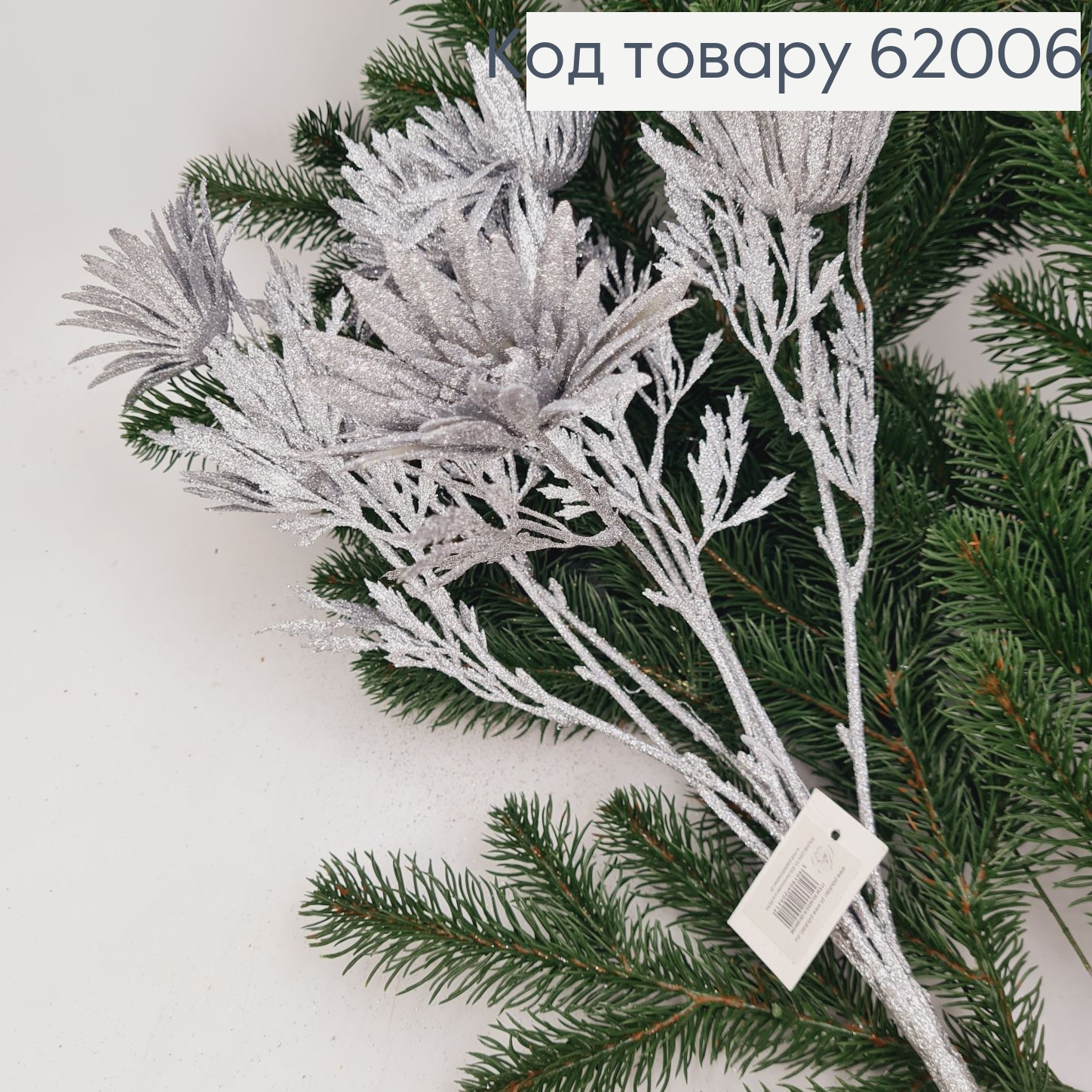 ¶Веточка из цветочков 7 шт на металлическом стержне 50 см глитер серебряный