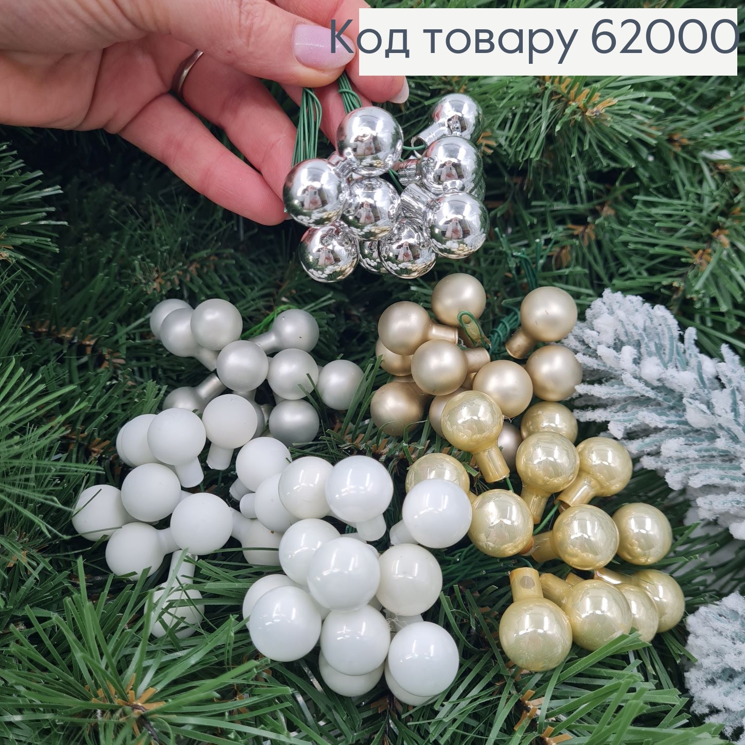 Пучок Ягодок (10шт/пучок) ПЕРЛАМУТРОВОГО цвета, на металлическом стержне, длина 16см 285146 фото