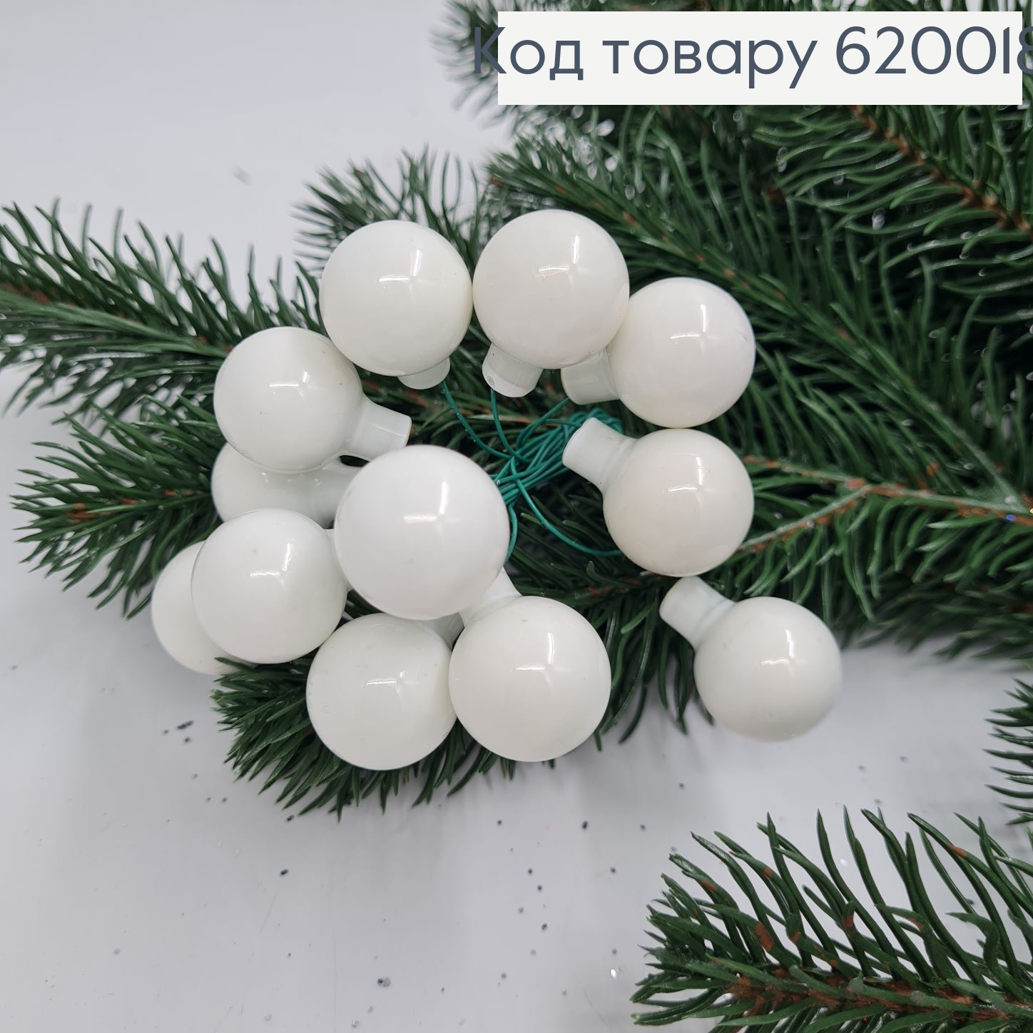Веточка из стеклянных белых шариков 2 см 12 шт в пучке