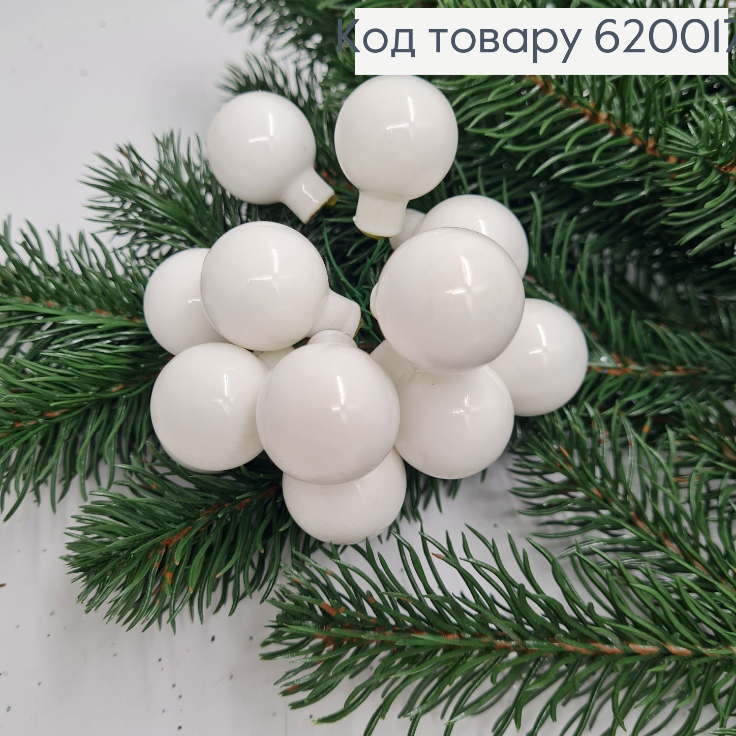 Веточка из стеклянных белых шариков 2,5 см 12 шт в пучке