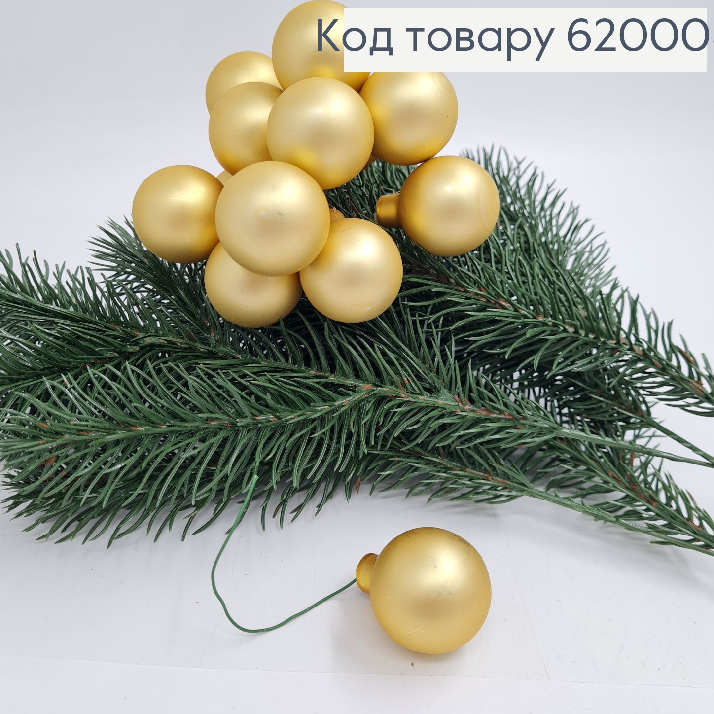 Веточка из стеклянных шариков матово золотых 3 см 12 шт.