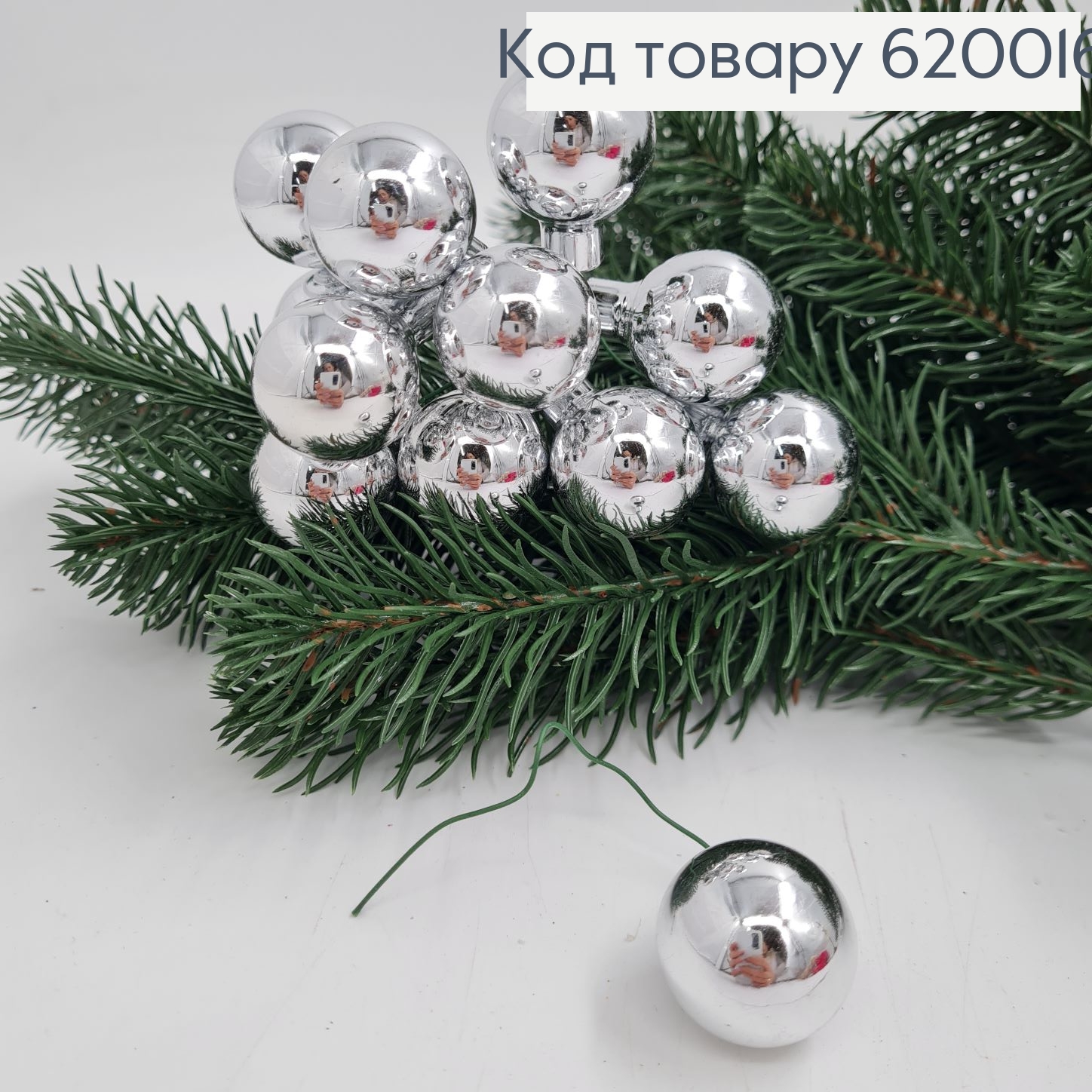 Веточка из стеклянных серебряных шариков 2,5 см 12 шт в пучке
