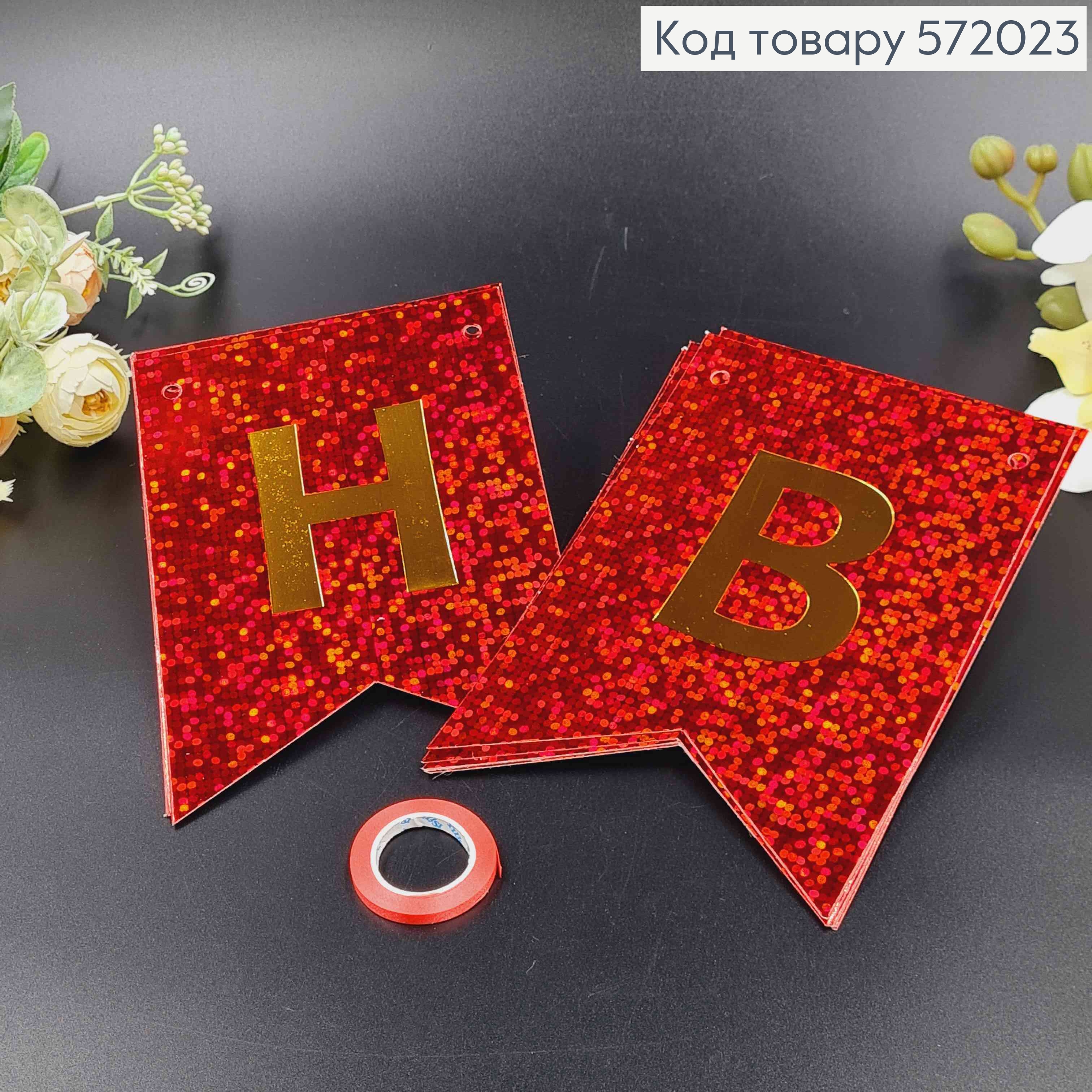 Гирлянда бумажная "Happy Birthday" Красного цвета с голографическим узором, 17*12см. 572088 фото