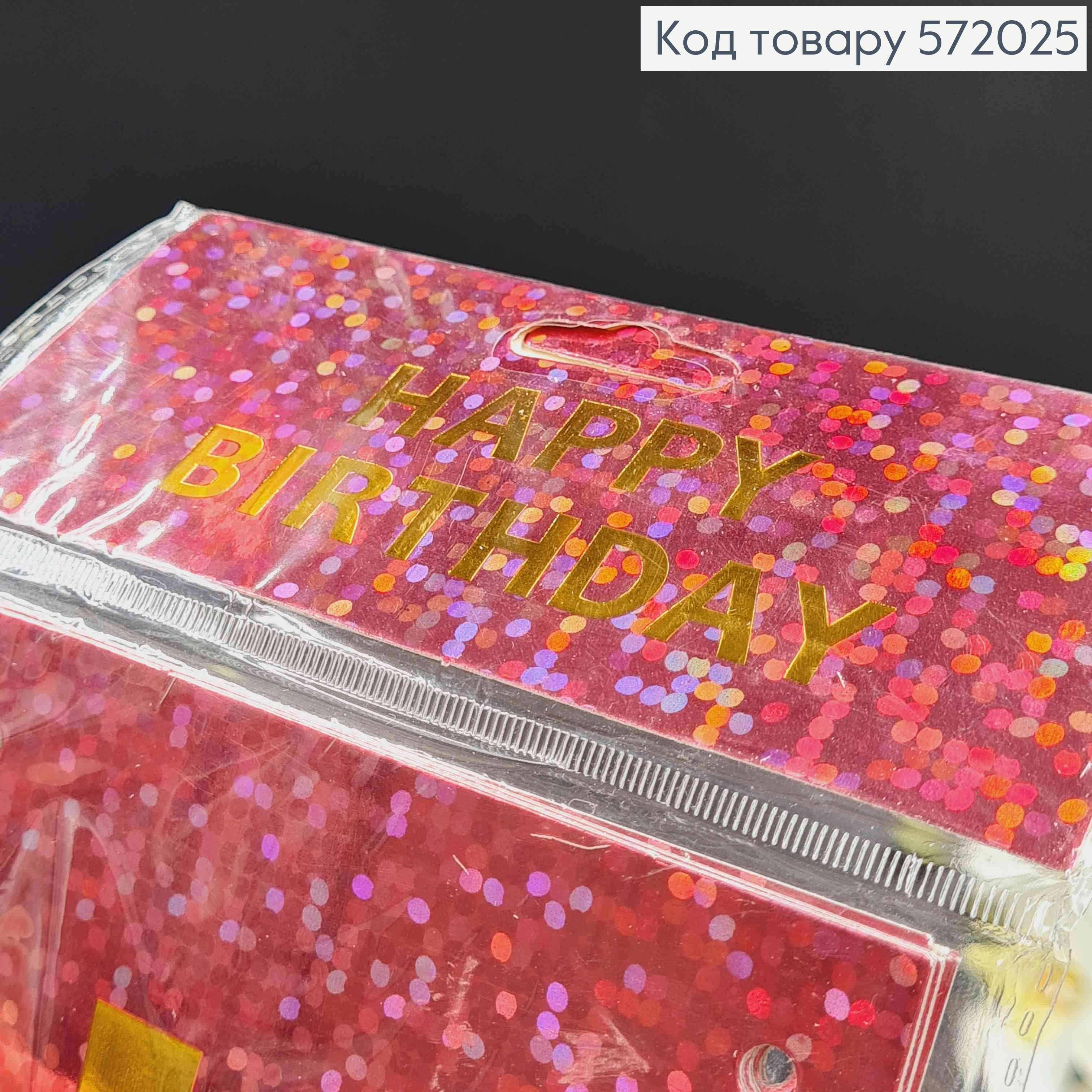 Гирлянда бумажная, "Happy Birthday" Малинового цвета с голографическим узором, 17*12см 572087 фото