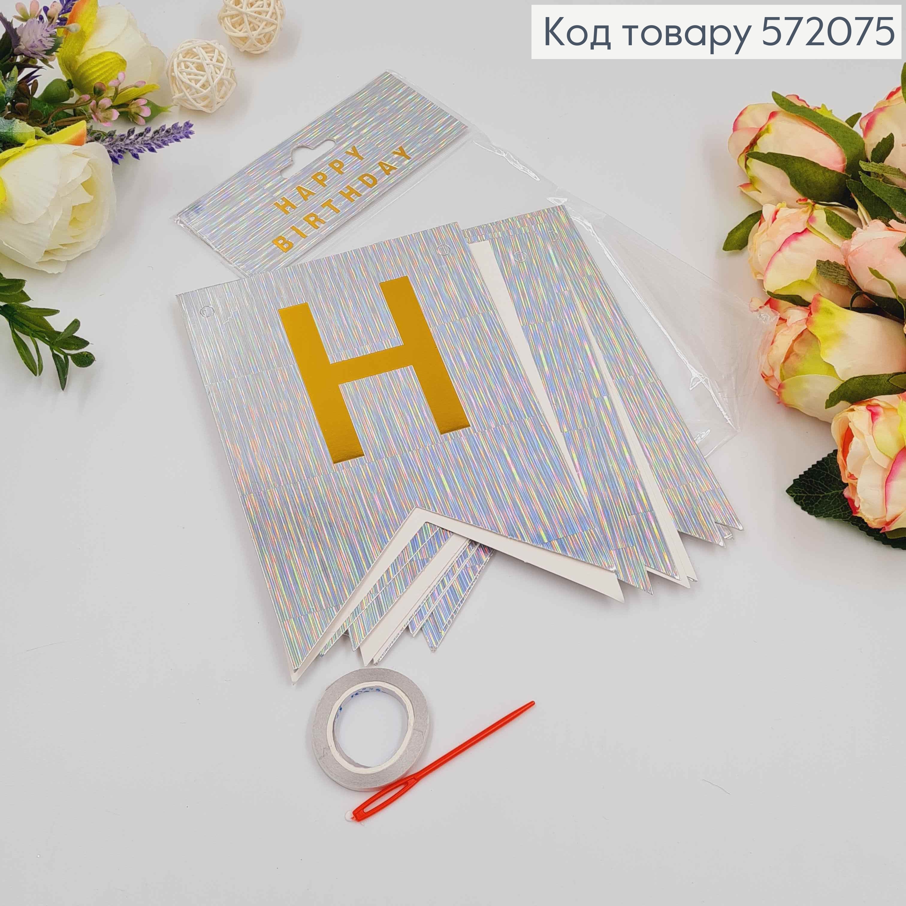 Гирлянда бумажная, "Happy Birthday" Бронзового цвета с голографическим узором, 17*12см 572084 фото
