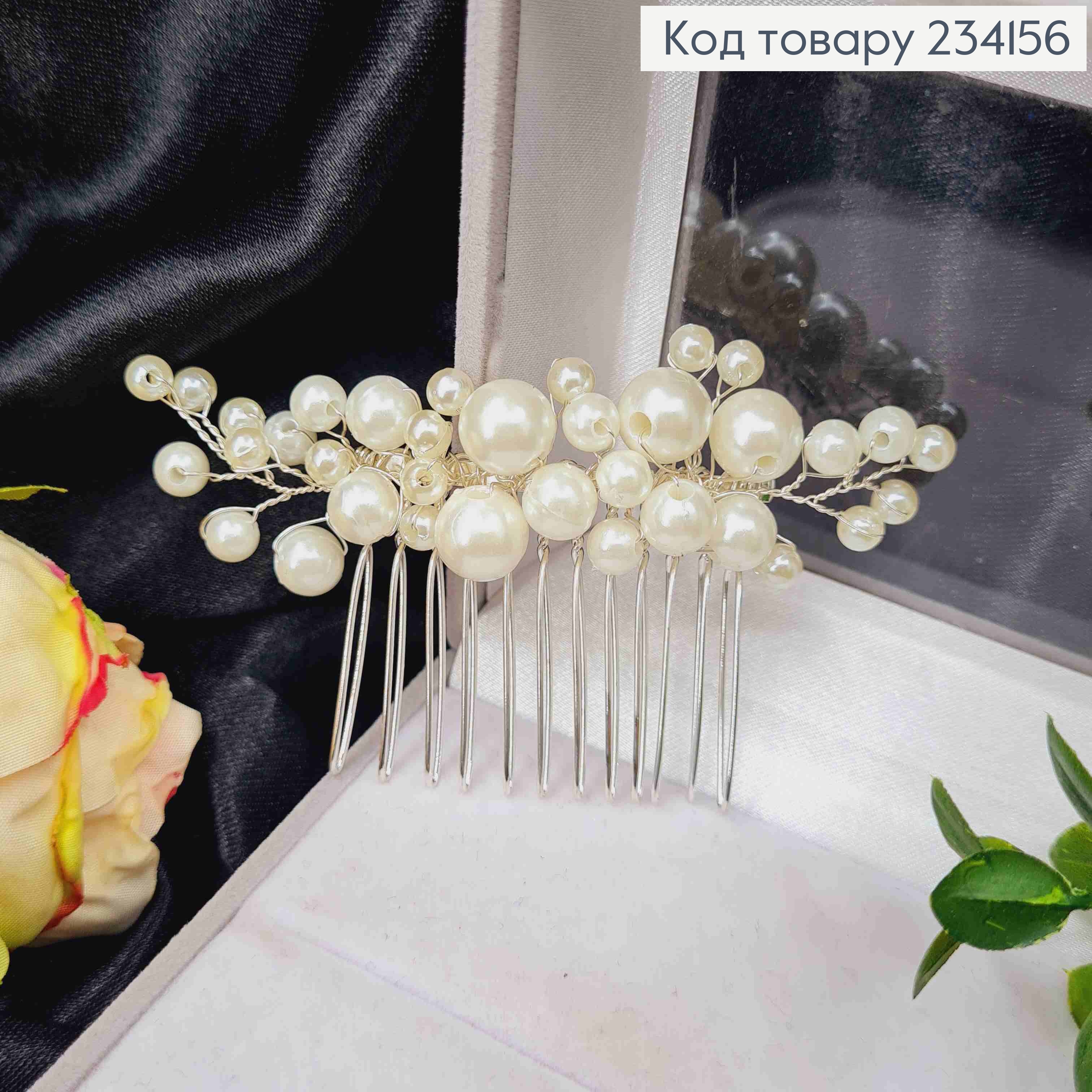 Гребень в волосы, веточка из перламутровых бусинок, серебряного цвета.