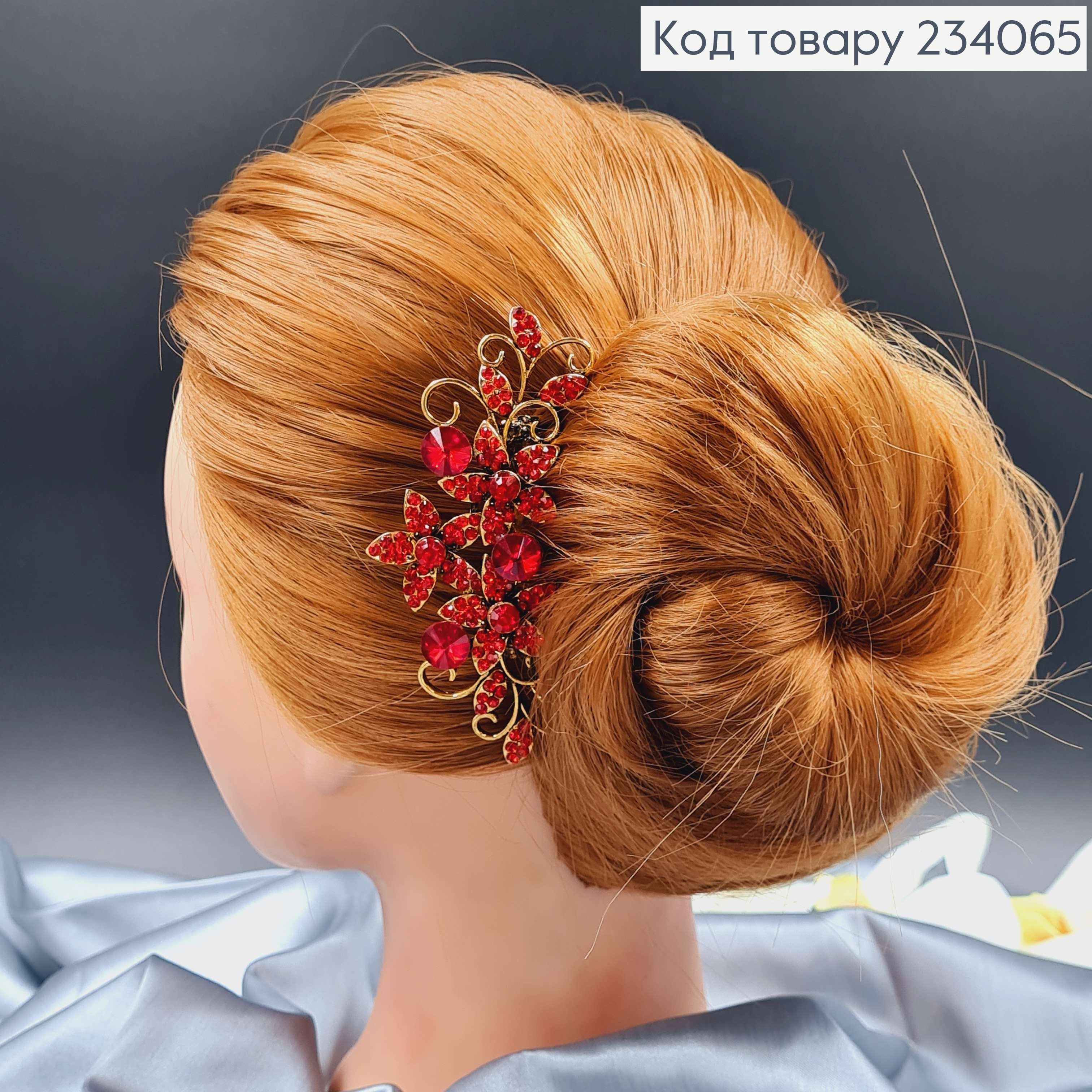 Гребень в волосы "Цветочек" под золото, в камнях рубинового цвета 10см.