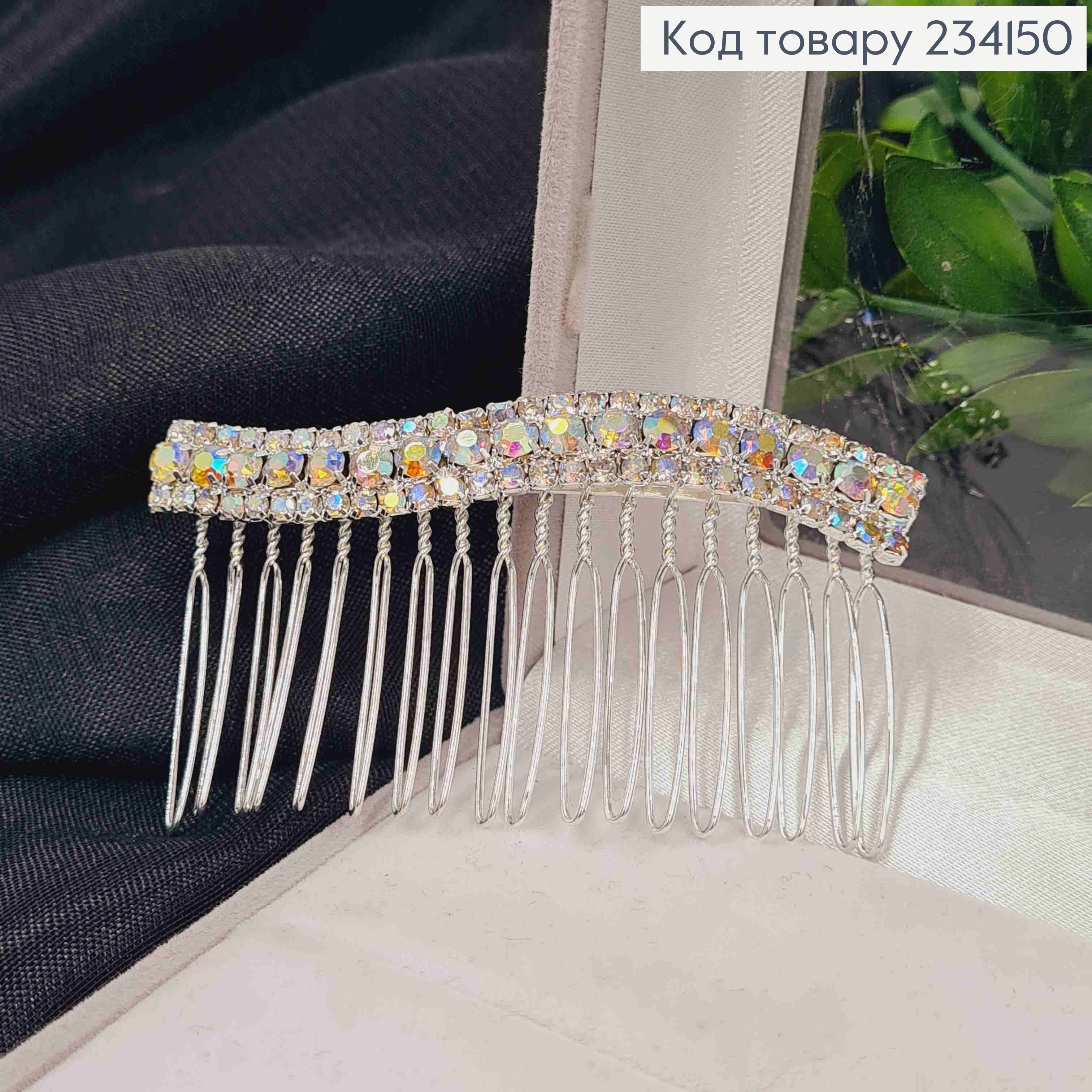 Гребень в волосы, Бантик с Блестящими камешками Хамелеон, Серебряного цвета 234185 фото