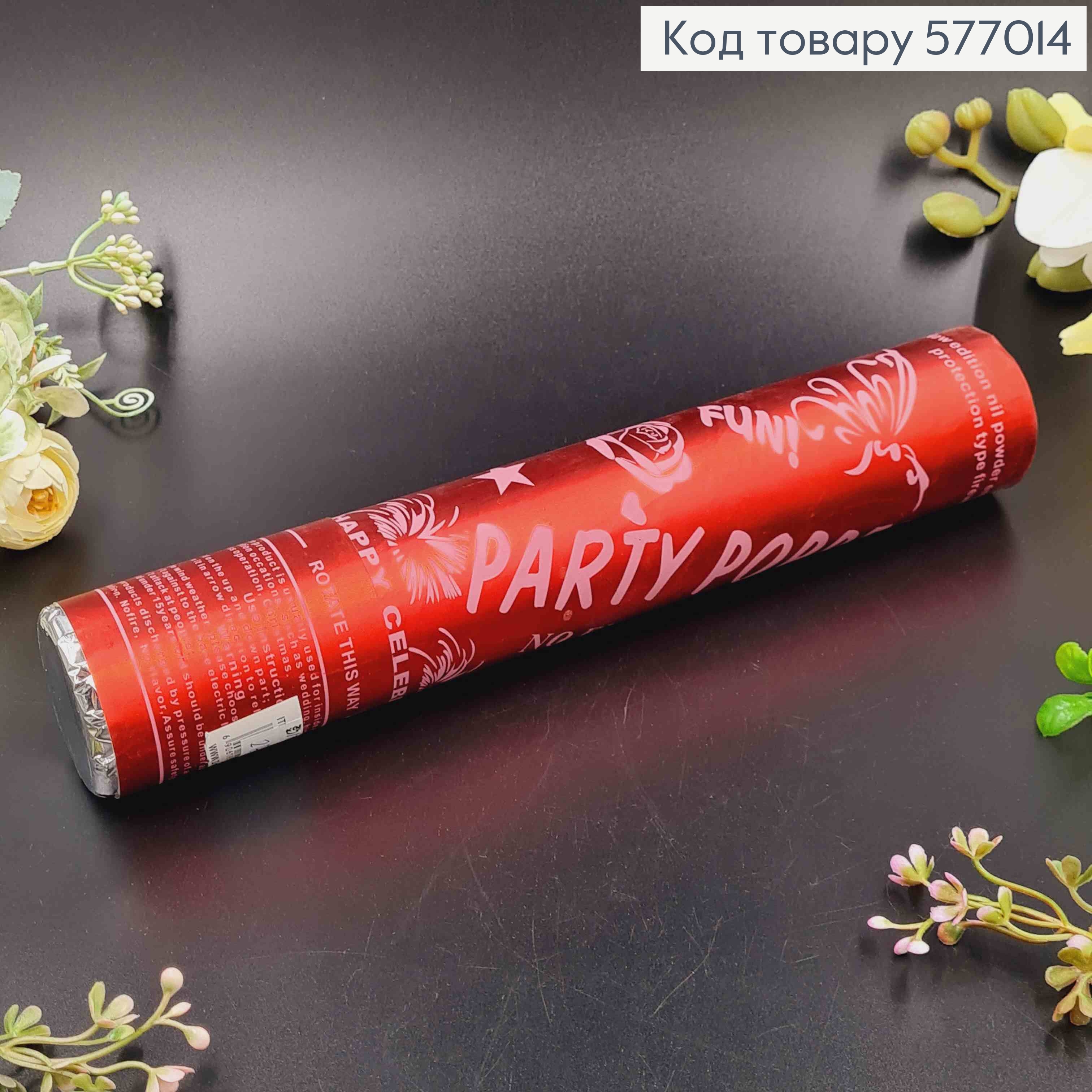 Хлопушка 27см, праздничная, с красным конфетти