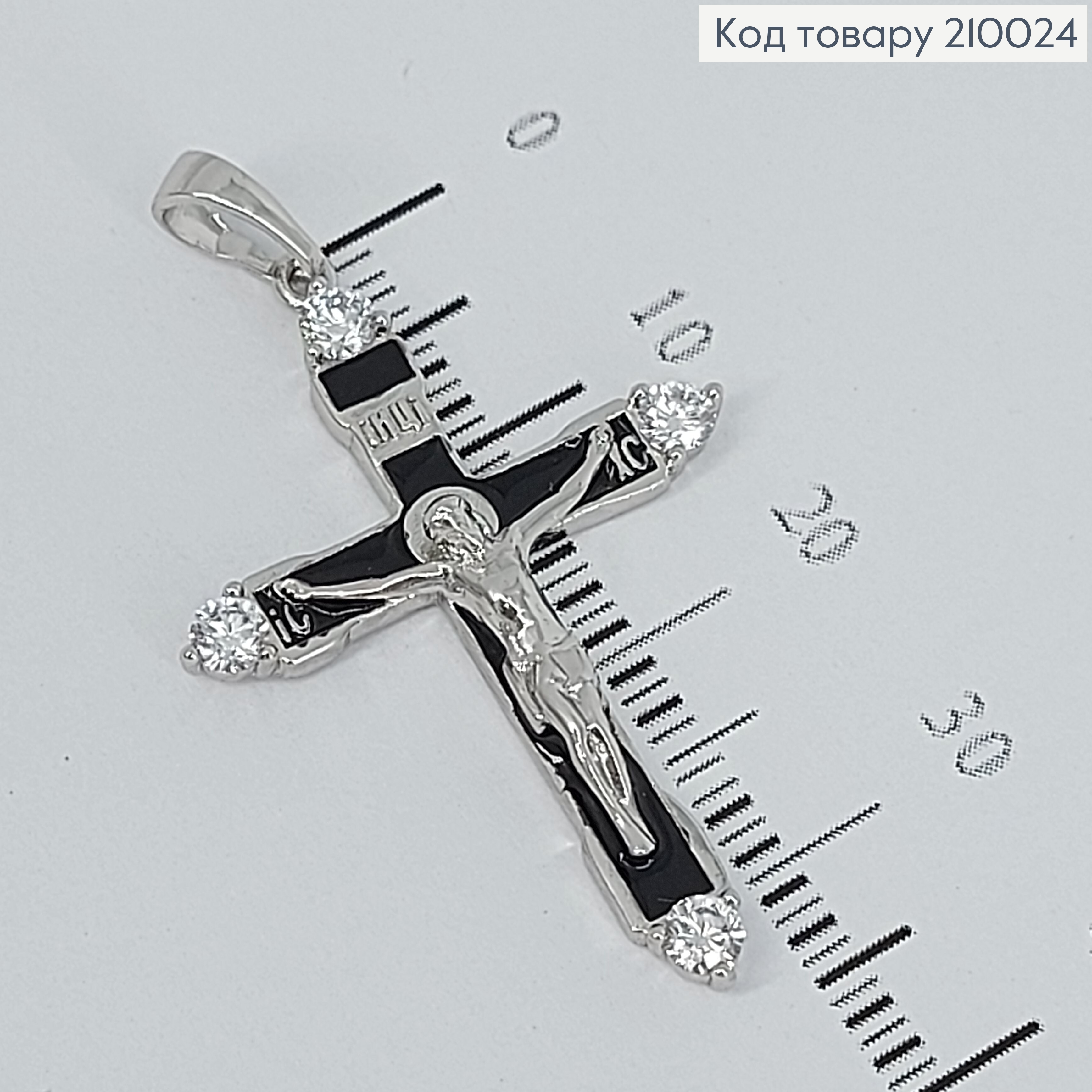 Крестик родованный украшен блестящими камешками и черной эмалью по краям, 3*1,8см, Xuping 210272 фото