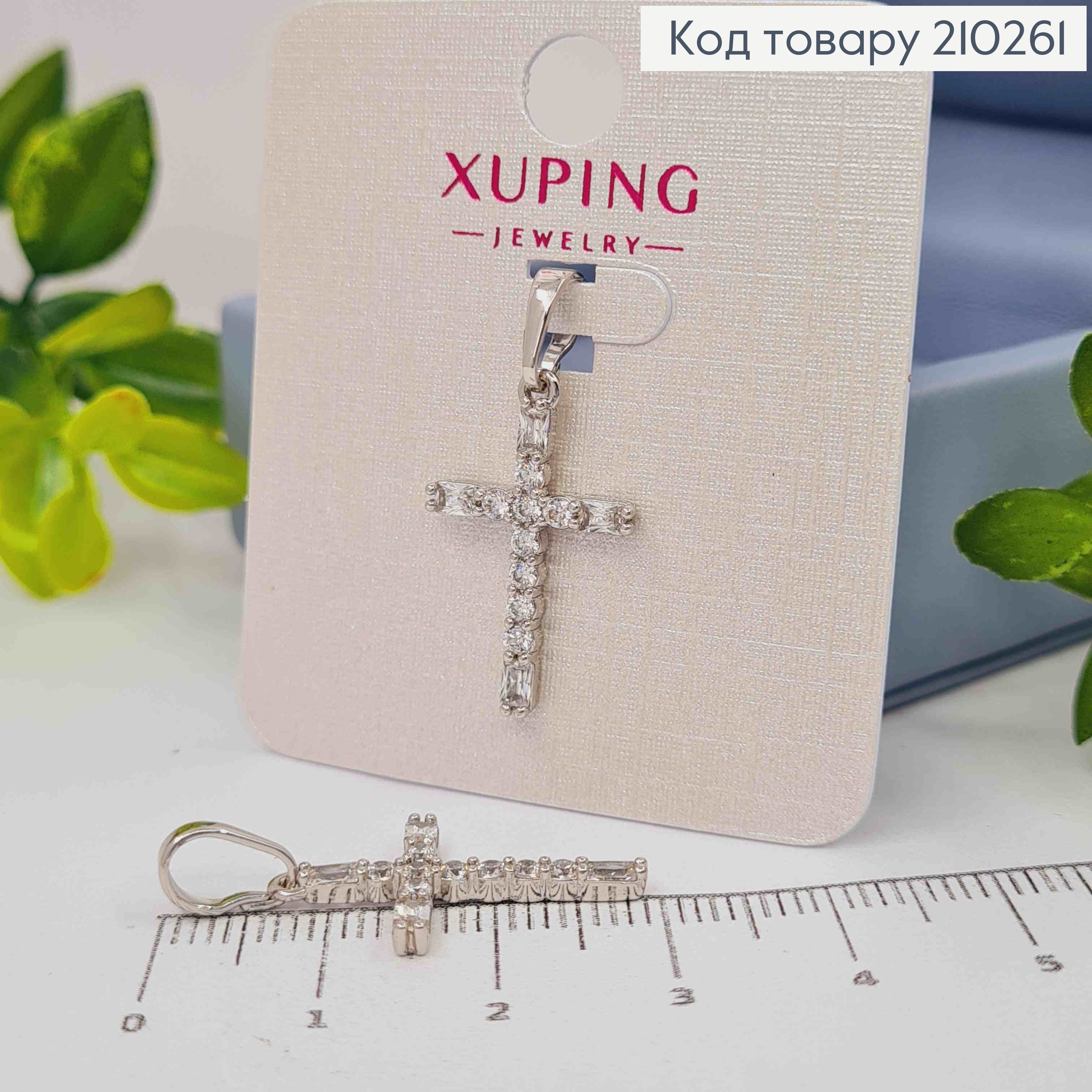 Крестик родованный украшен блестящими камешками, размер 2,8*1,6см, Xuping 210285 фото