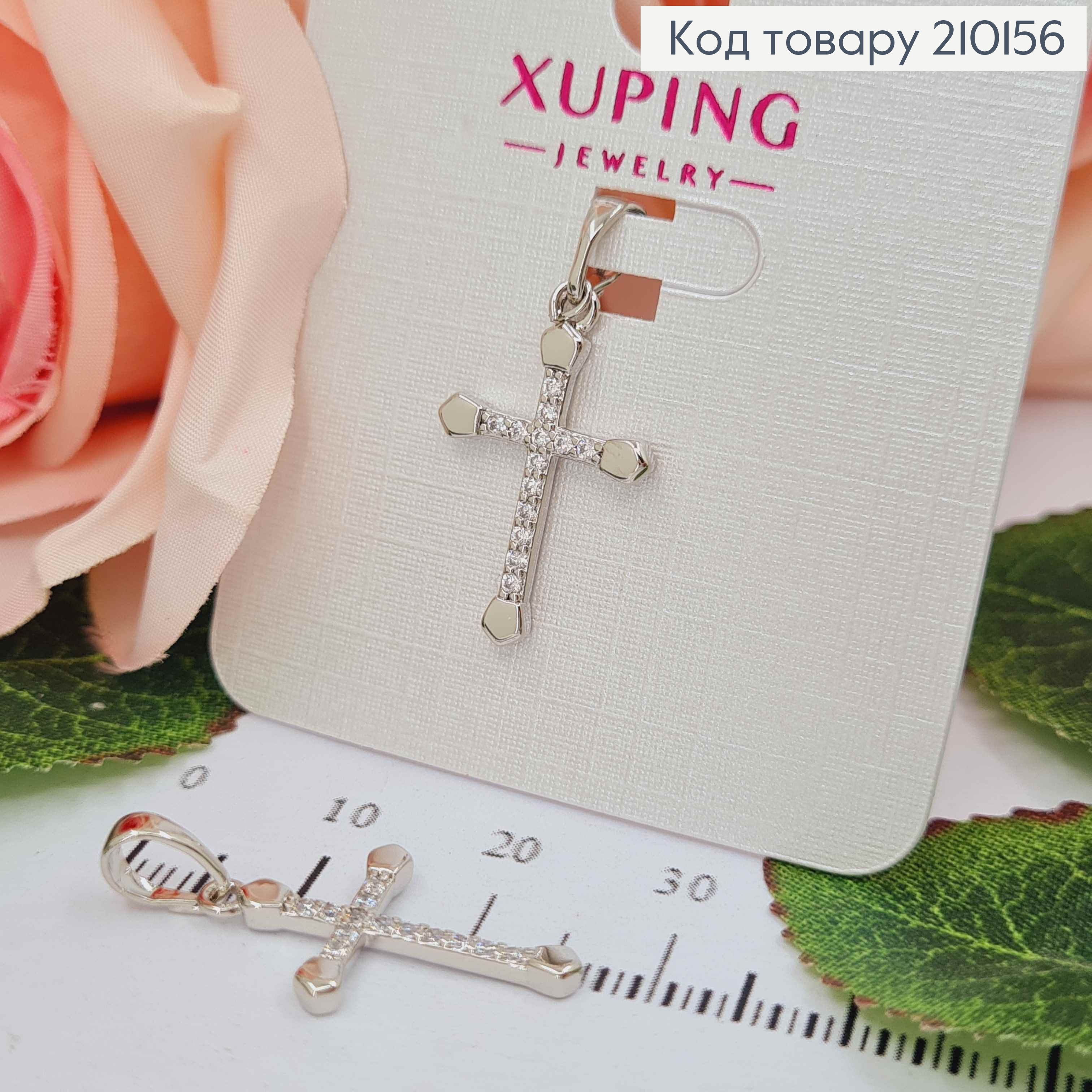 Крестик родованный с распятием и в камнях, размер 2,8*2см Xuping (серебряного цвета) 210280 фото