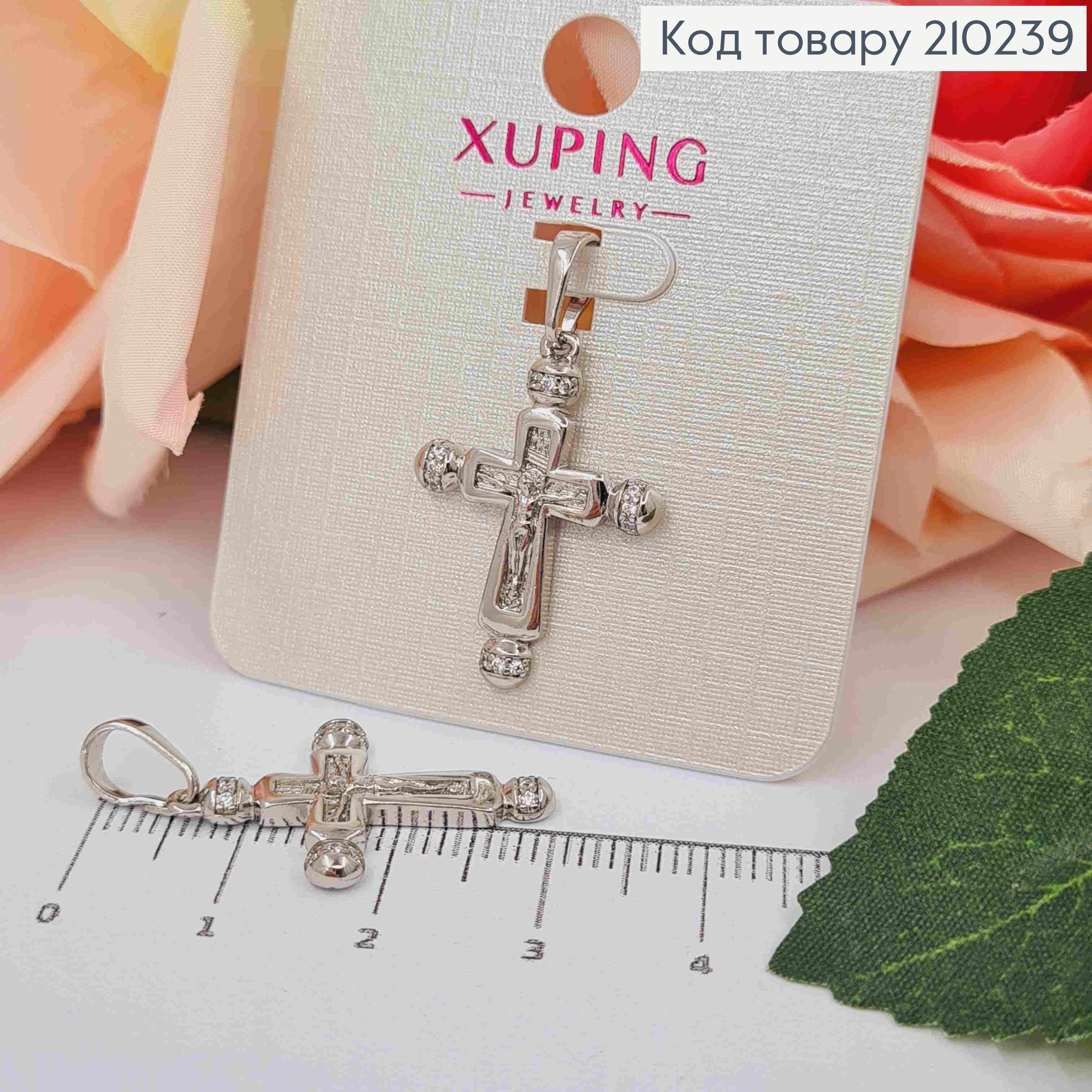 Крестик родованный с распятием и в камнях, размер 2,8*2см Xuping (серебряного цвета) 210280 фото