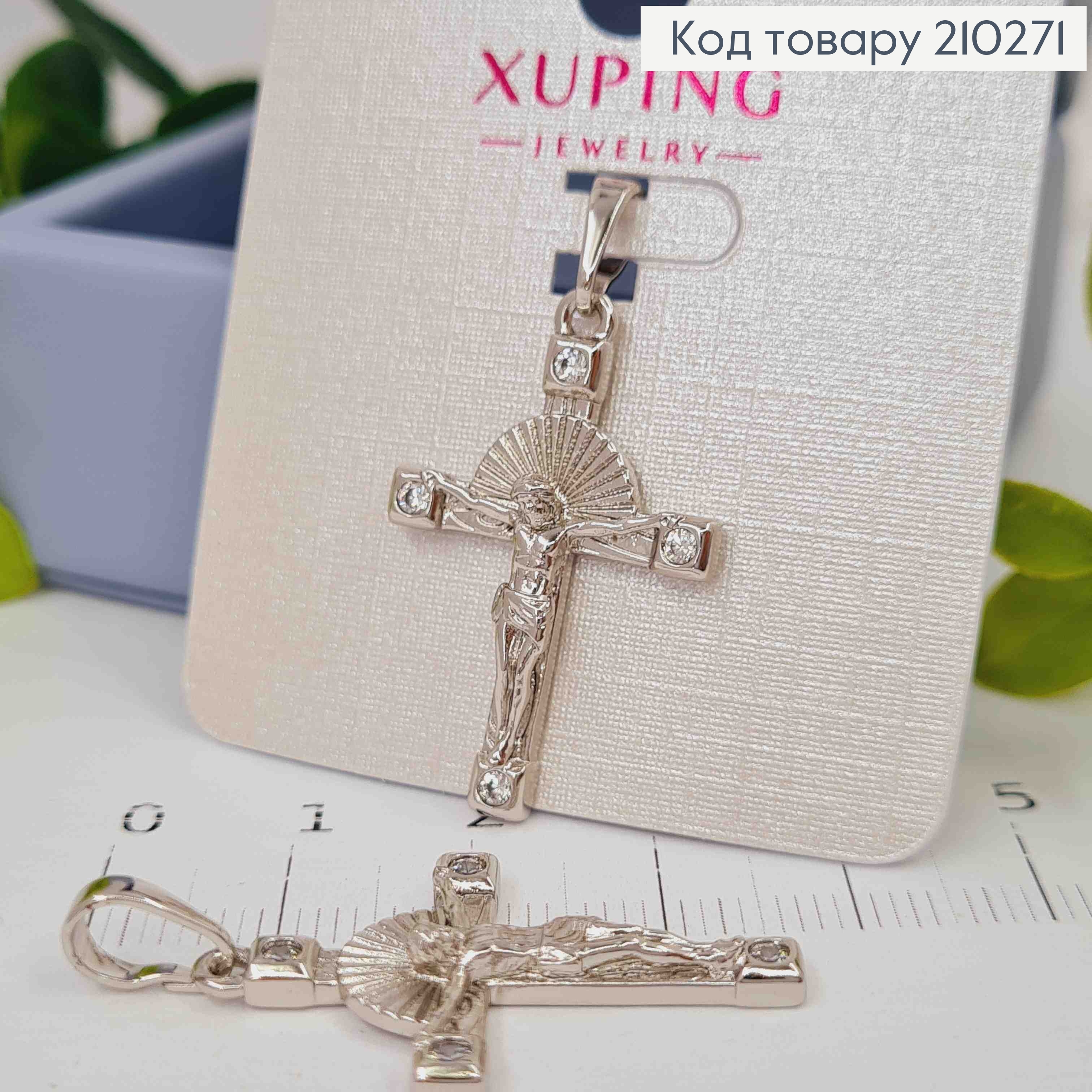 Крестик родованный с распятием и в камнях, размер 2,8*2см Xuping (серебряного цвета) 210280 фото