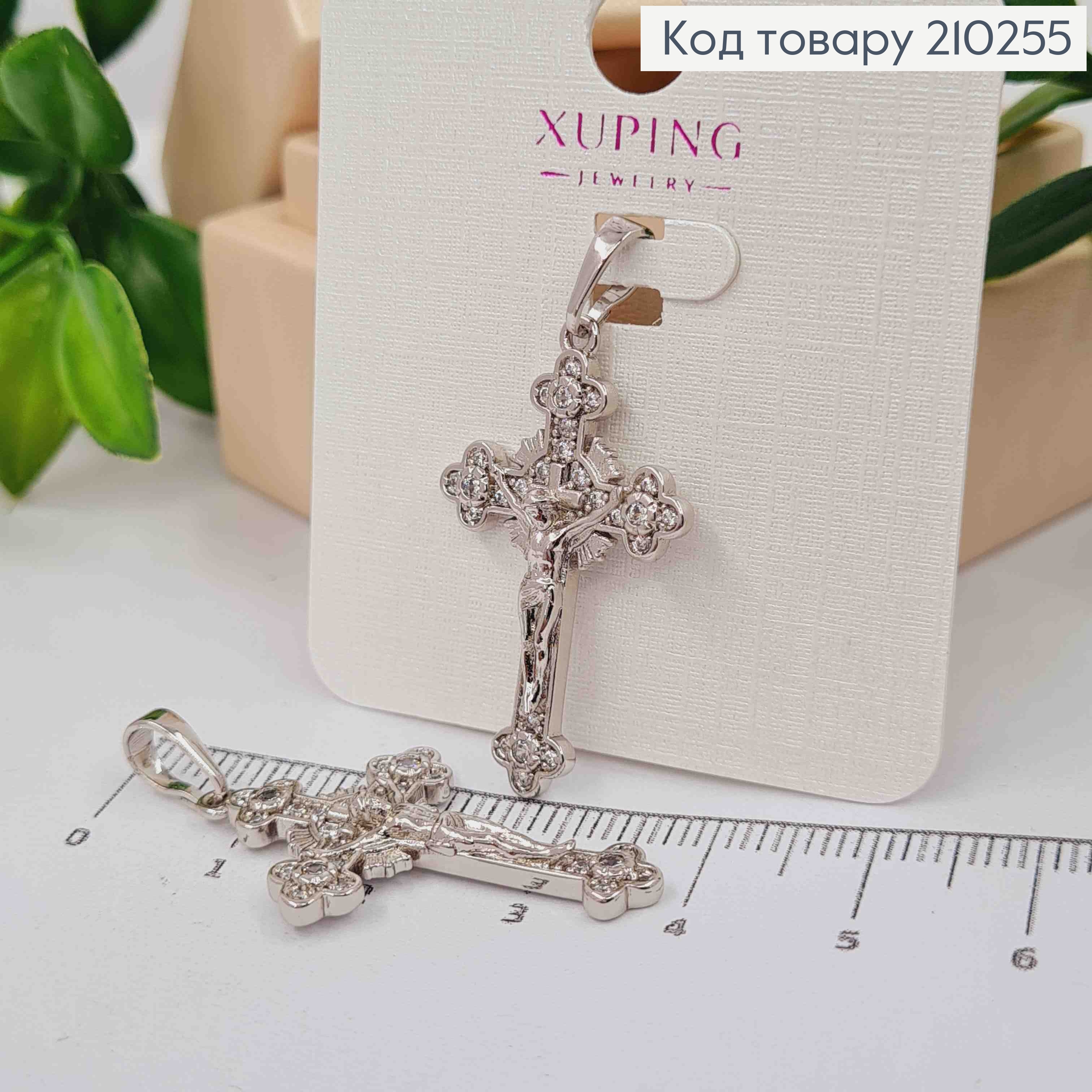 Крестик родованный с распятием и в камнях, размер 2,8*2см Xuping (серебряного цвета) 210280 фото
