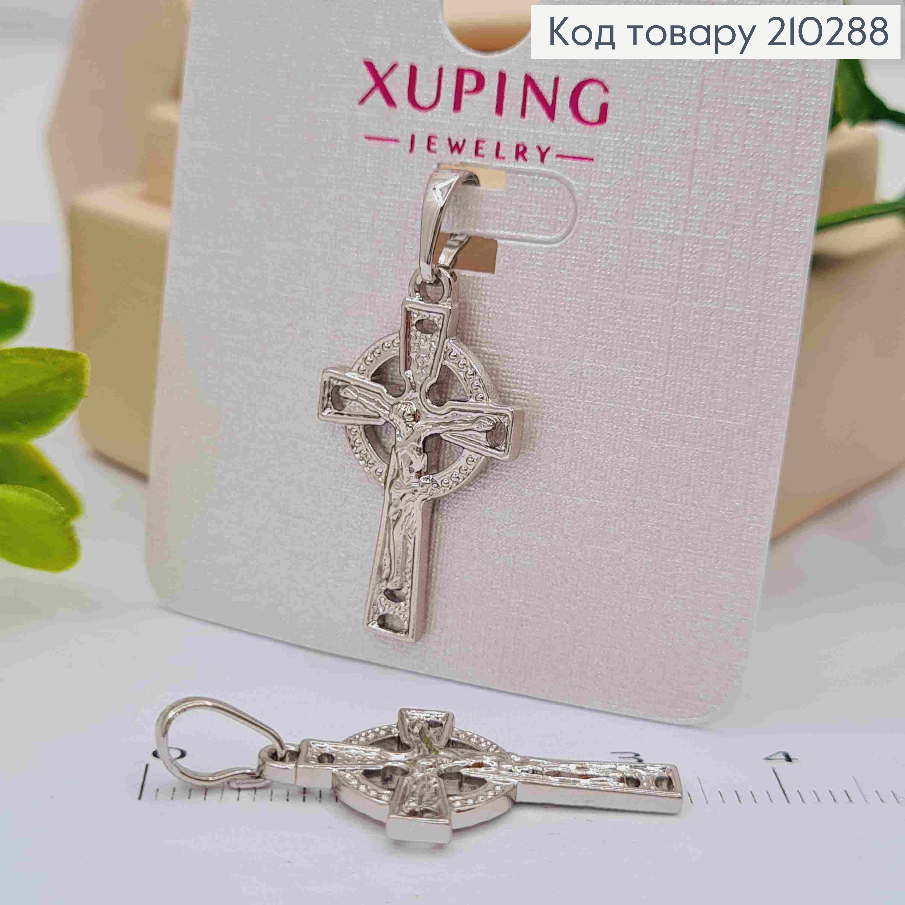 Крестик родованный с распятием и в камнях, размер 2,8*2см Xuping (серебряного цвета) 210280 фото