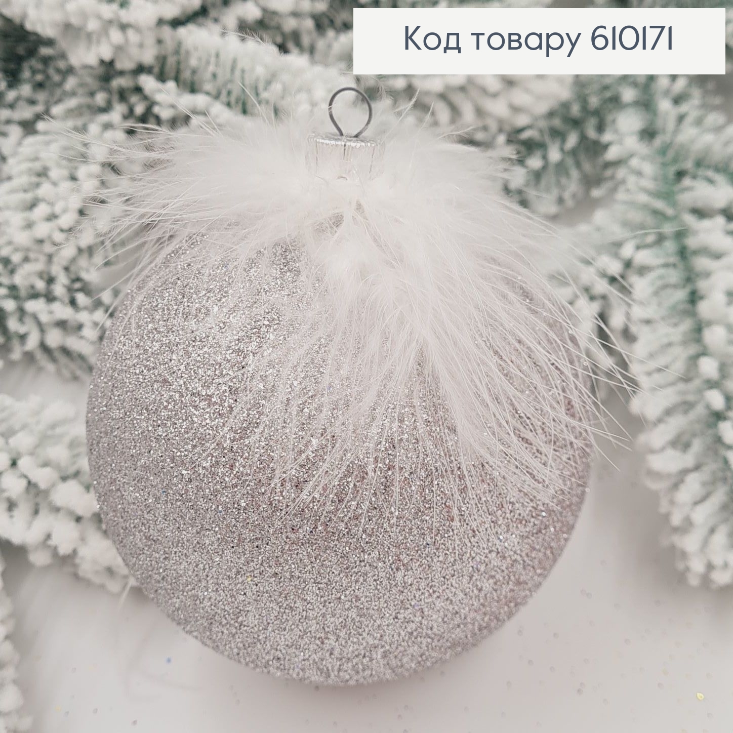 Игрушка шар 100 мм Перья СЕРЕБРЯНАЯ, Україна