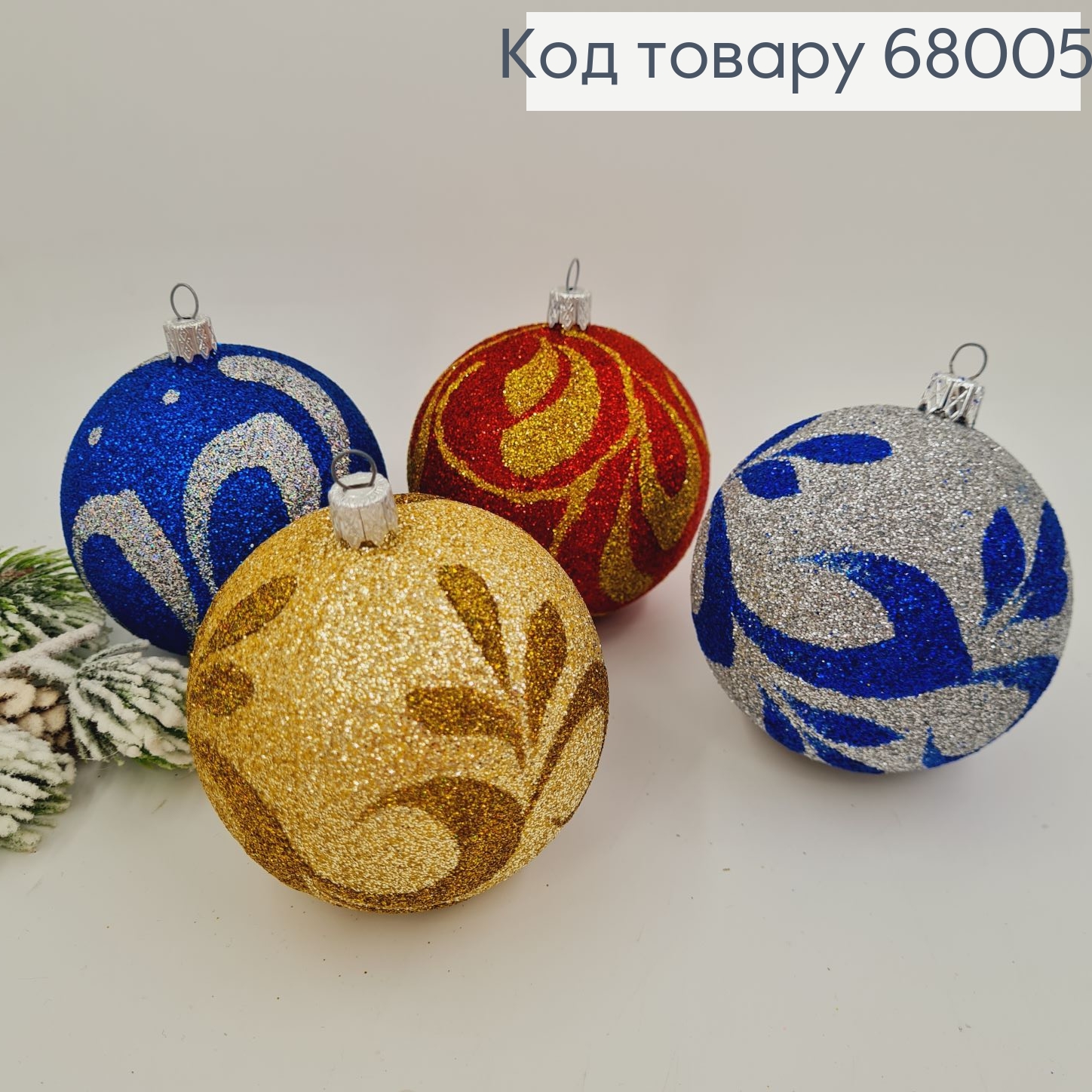 ¶Игрушка шар 80 мм Глитер с росписью в асс.