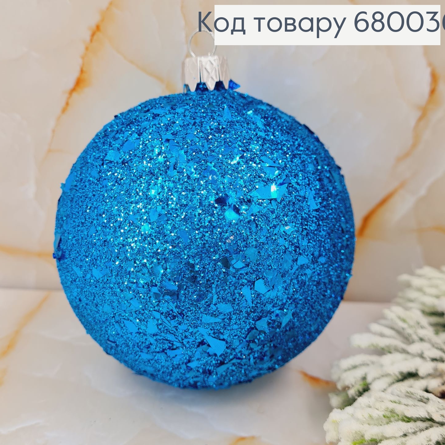 Игрушка шар(1шт) 80мм "БАРХАТ+ЦЕПЕЧКА" СИНИЙ цвет, новогоднее украшение пластиковое,Украина 680277 фото