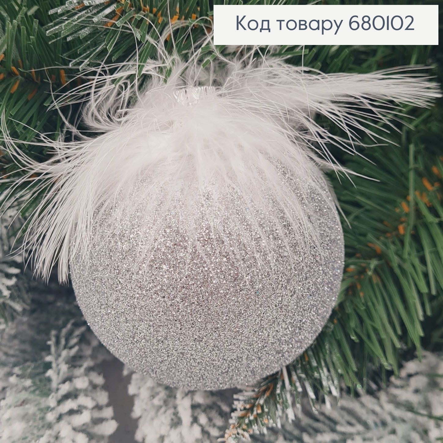 Игрушка шар 80мм Перья СЕРЕБРО, Украина