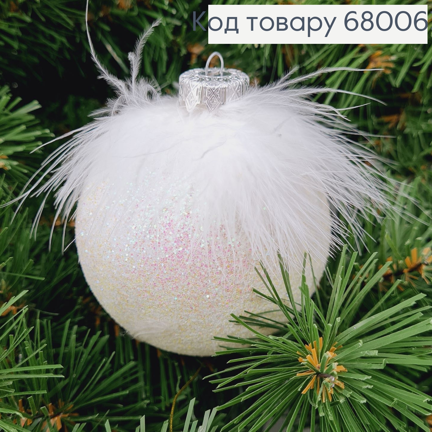 Набор игрушек 80мм (6шт) "ПАСТЕЛЬ+рис", БЕЛЫЙ цвет, новогодние украшения, пластик, Украина 680275 фото