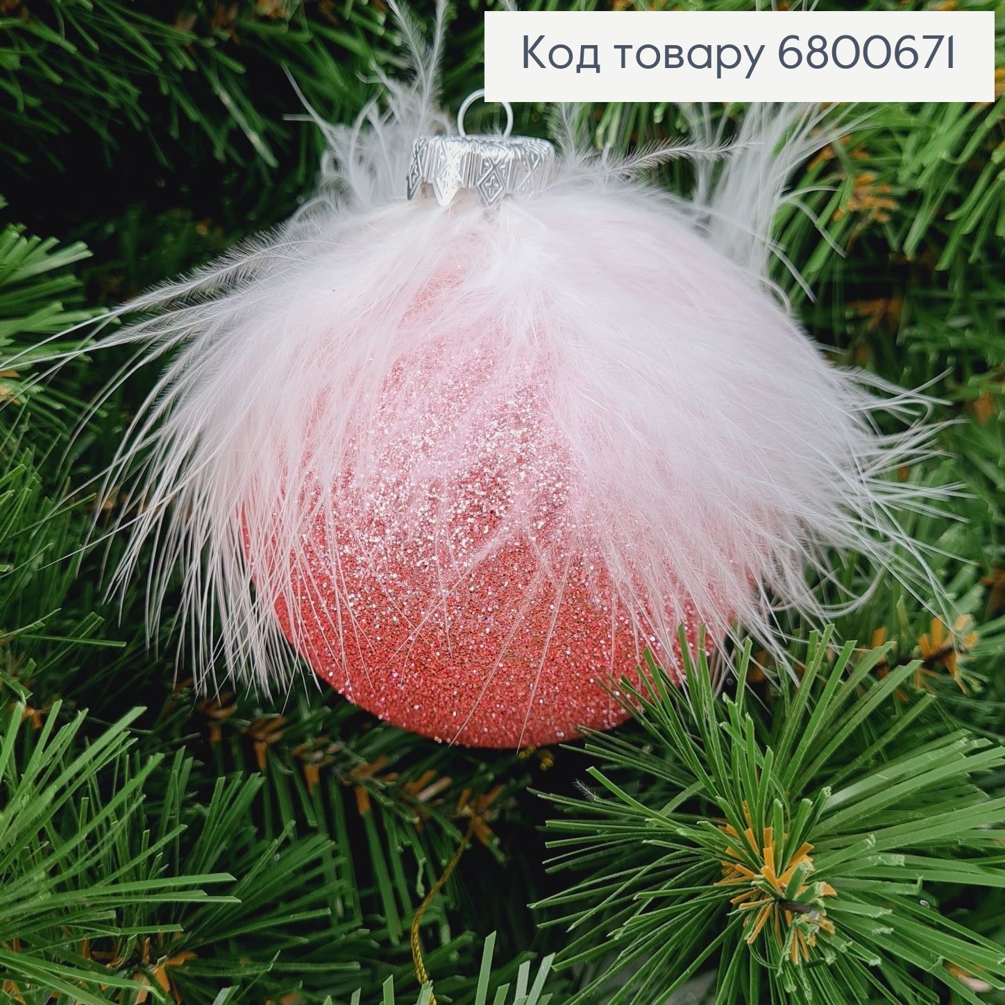 Набор игрушек 80мм (6шт) "ПАСТЕЛЬ+рис",КОРАЛОВЫЙ цвет, новогодние украшения, пластик, Украина 680273 фото