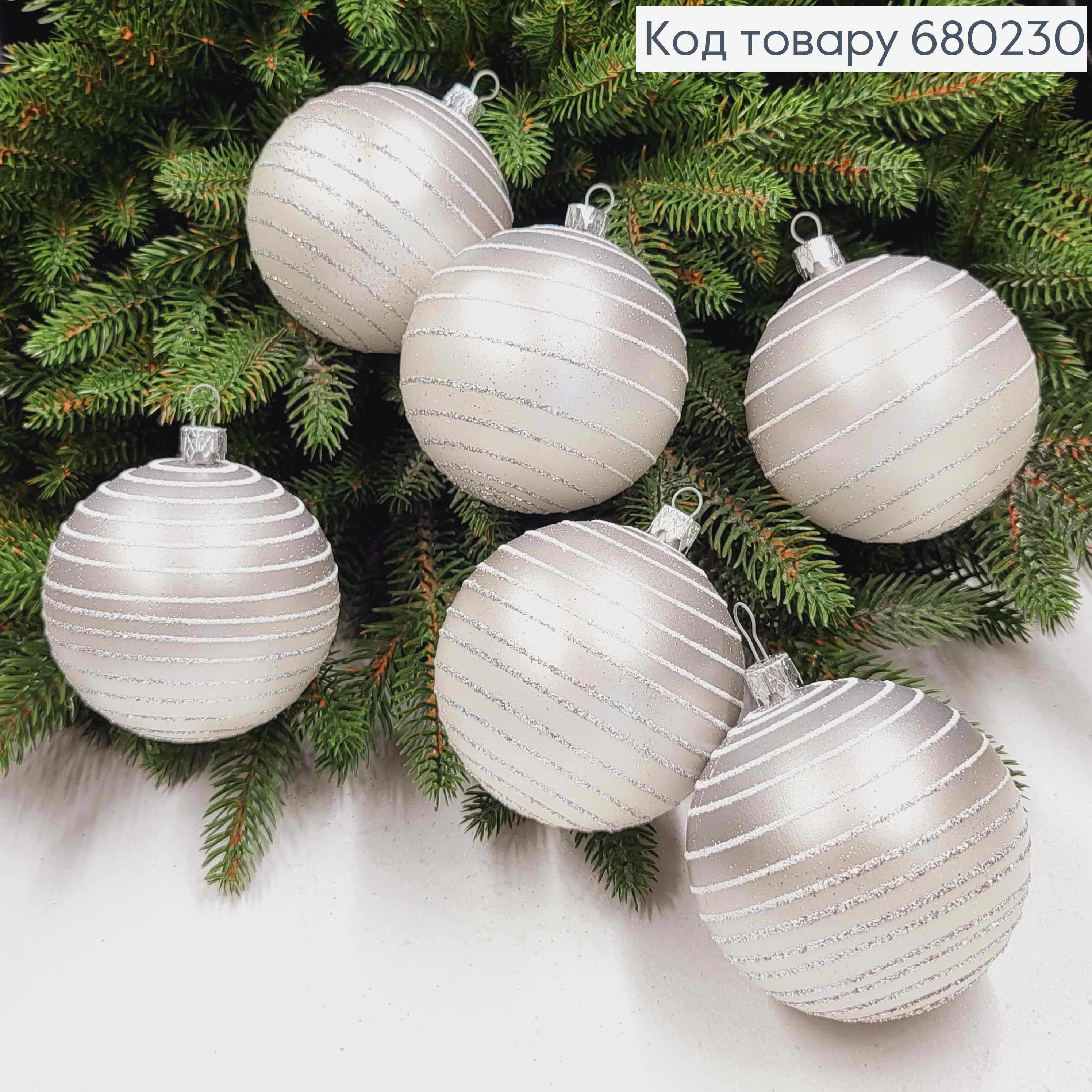 Набор игрушек 80мм (6шт) "ПАСТЕЛЬ+рис", БЕЛЫЙ цвет, новогодние украшения, пластик, Украина 680275 фото