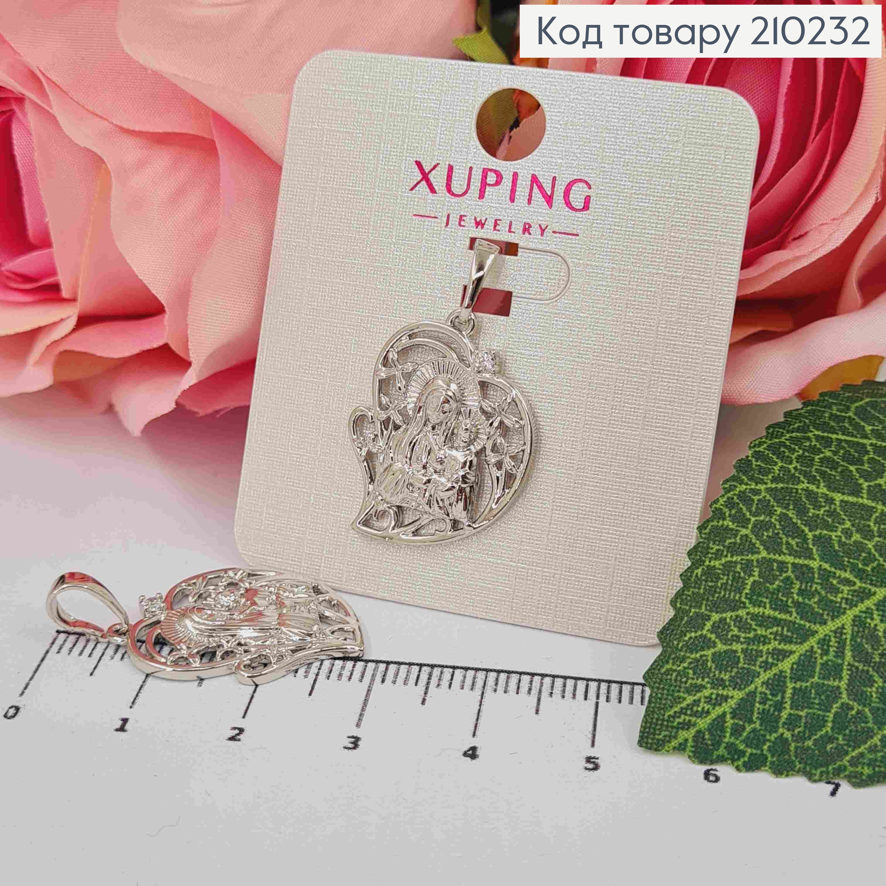 Иконка-Ладанка, Божья Матерь с Иисусом, в сердце, 2,2 см, Xuping