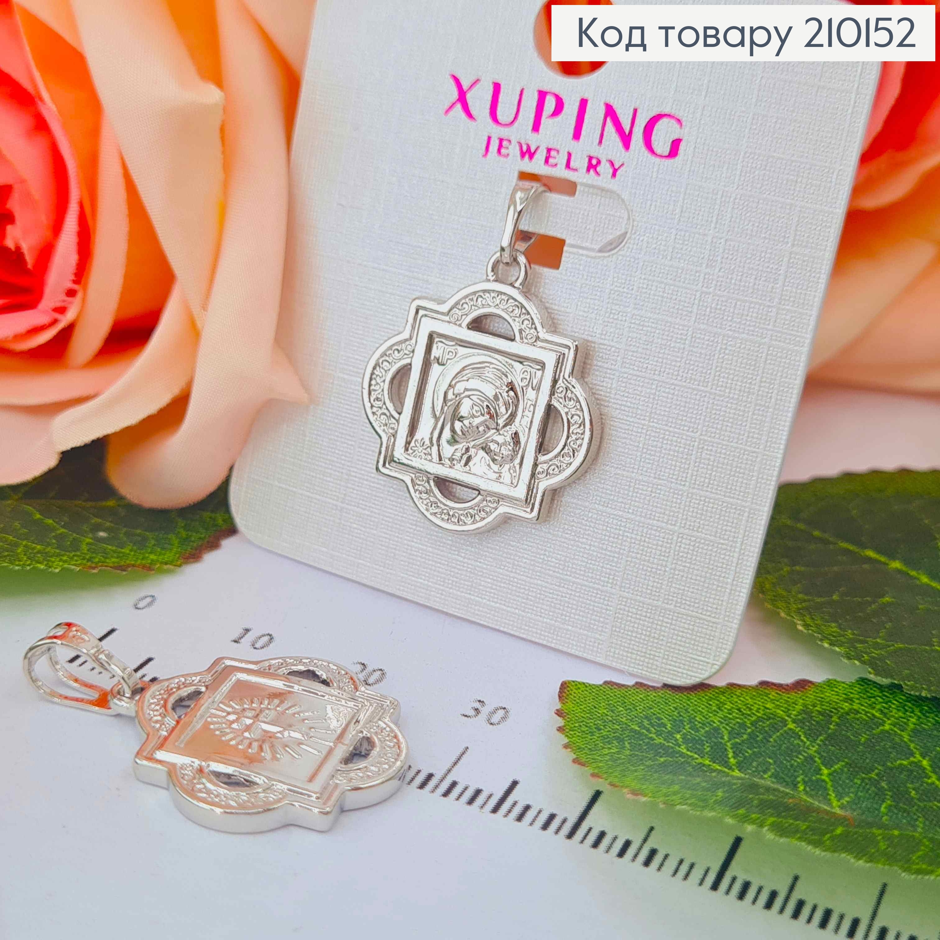 Иконка-Ладанка родованная "Божья Матерь" с Блестящими камешками по краю, 3,6см*2,5см Xuping 210267 фото