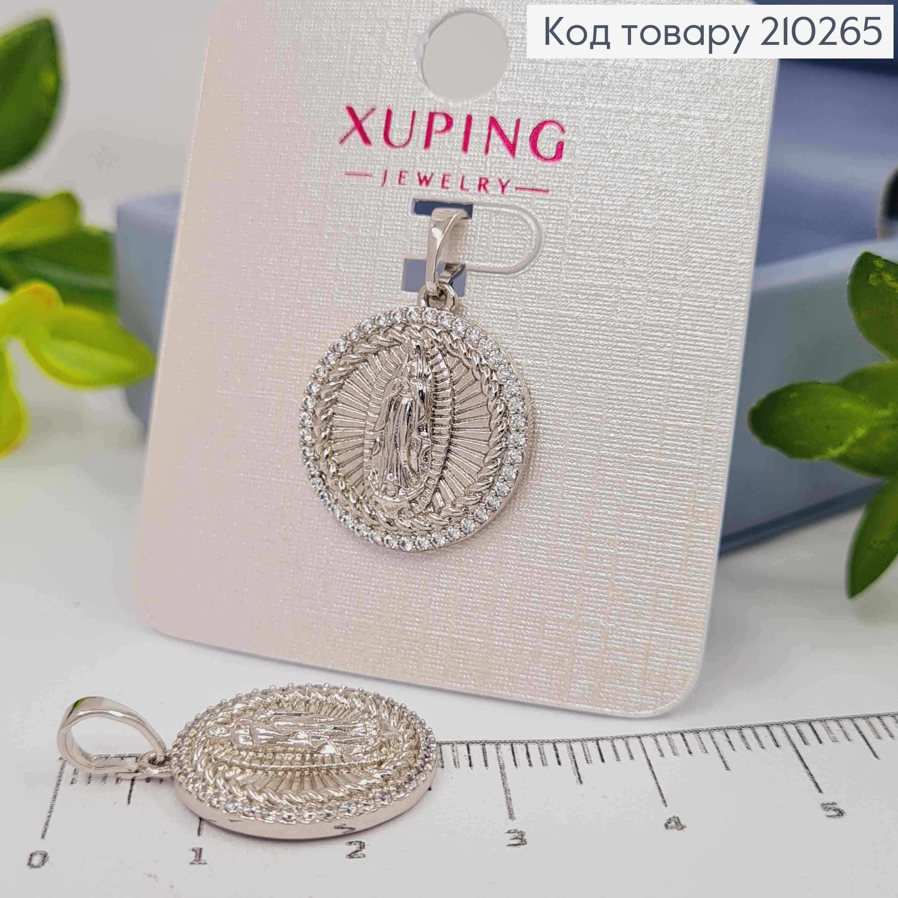 Иконка-Ладанка родованная "Божья Матерь" с Блестящими камешками по краю, 3,6см*2,5см Xuping 210267 фото