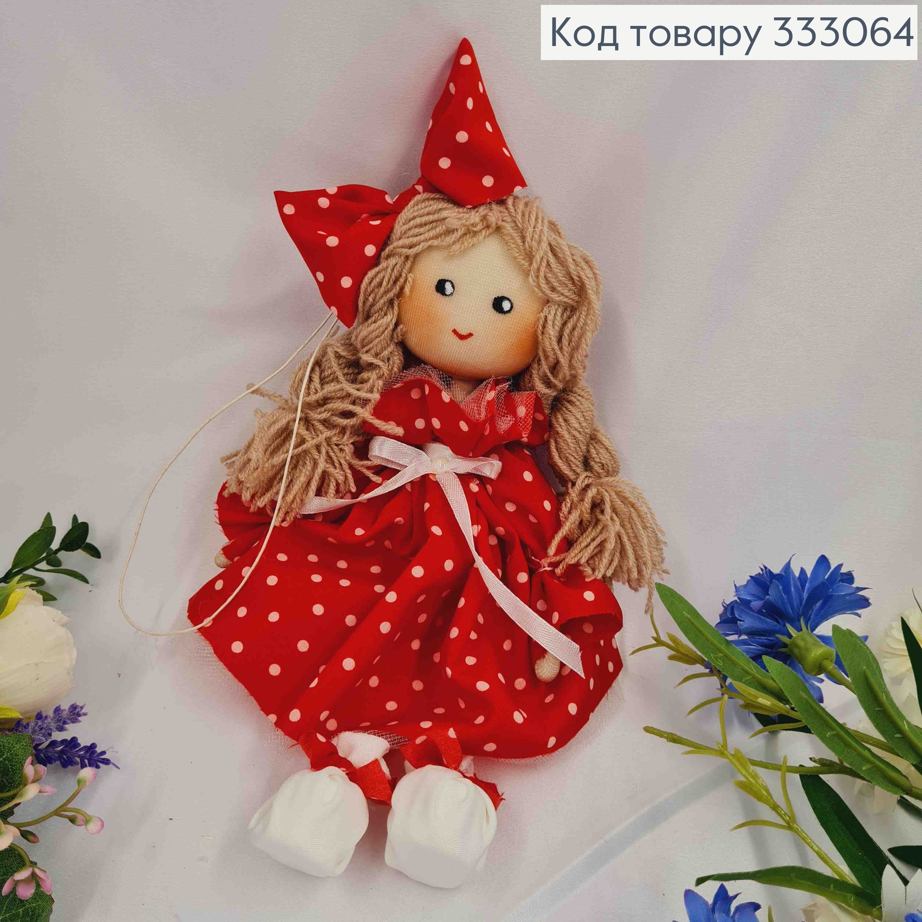 Интерьерная подвесная кукла, "Нина" в Красном платье в горошек (27см), ручная работа, Украина.