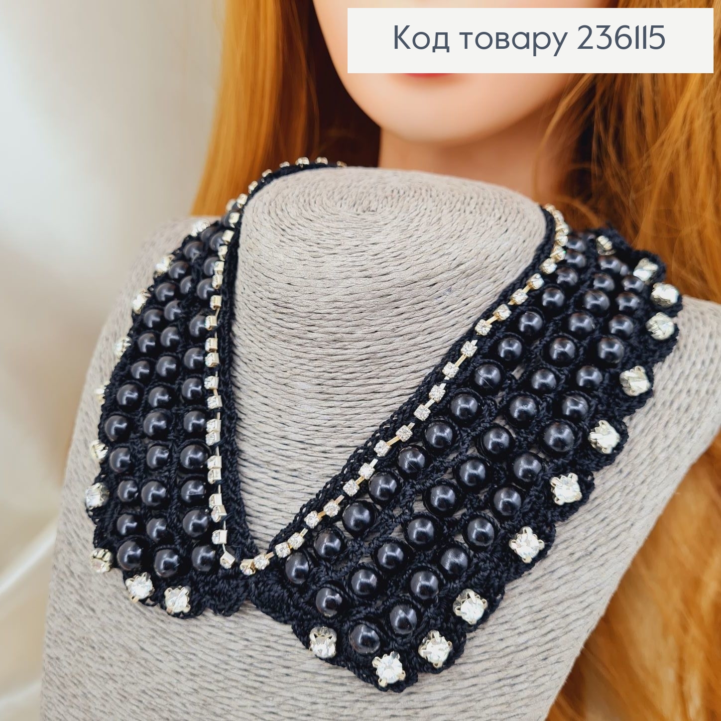 Воротник черный с бусинками и камнями