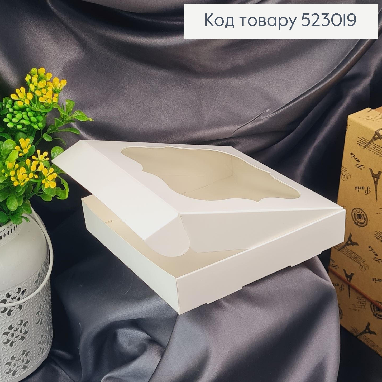 Кондитерская коробка с прозрачным верхом, 15х15х3см
