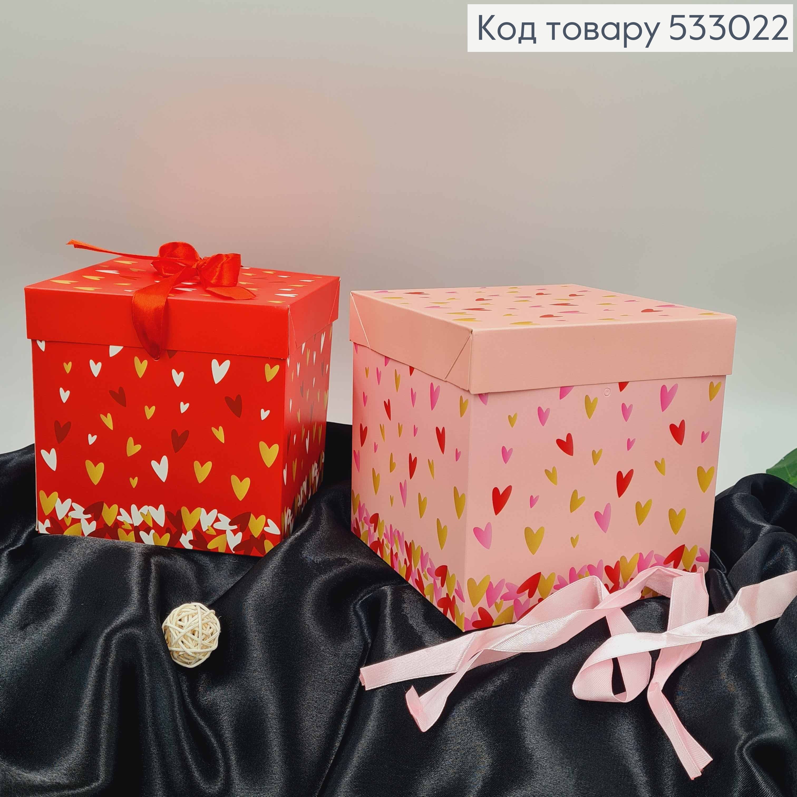 Коробка складная, с крышкой, В мелких сердечках, в ассорт. 15*15*15см