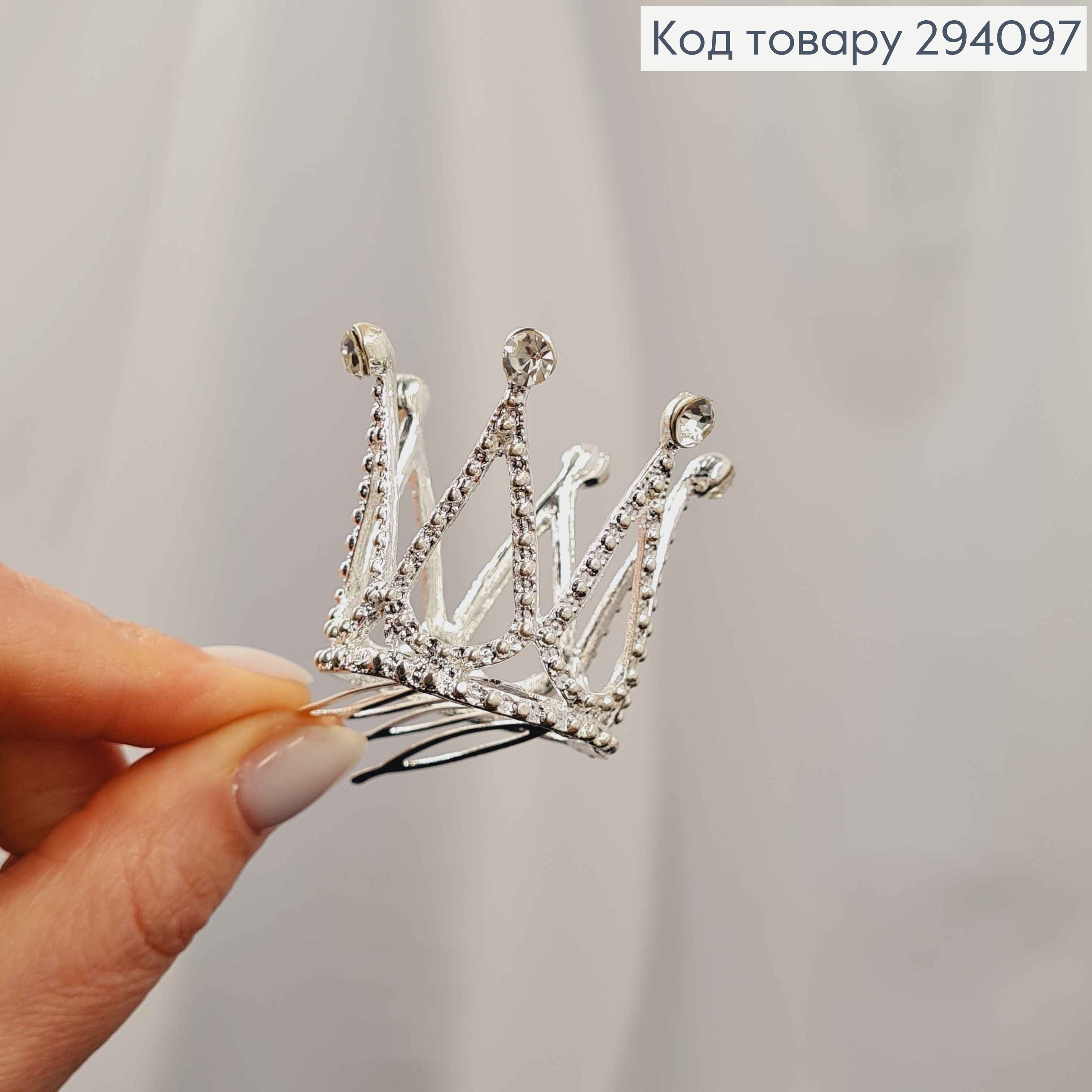 Корона с камешками 3*4см, СЕРЕБРЯНОГО цвета назаколочке гребень