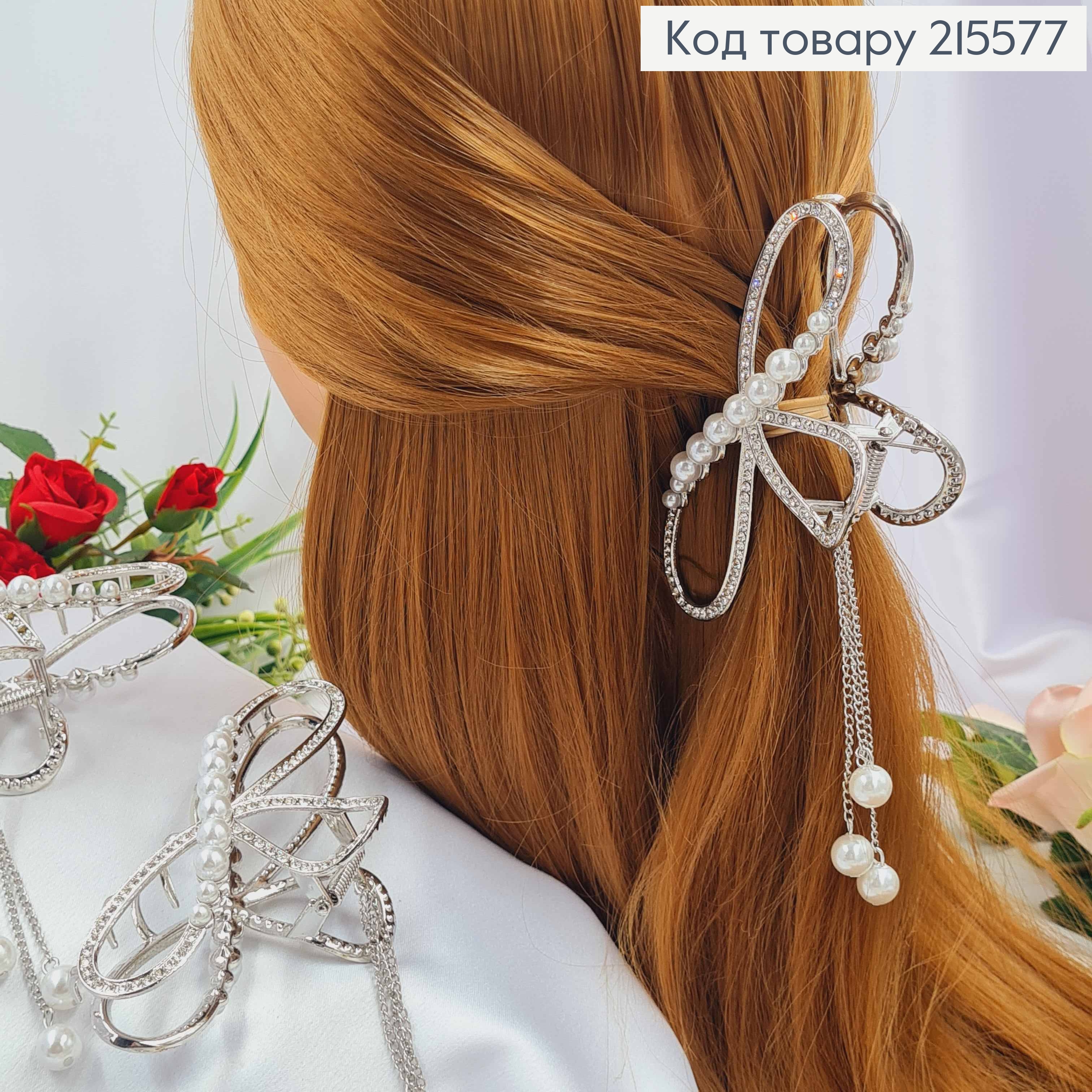 Краб металл "Бантик с Колоском" украшен Блестящими камешками, 11,5см, Серебряного цвета 215773 фото