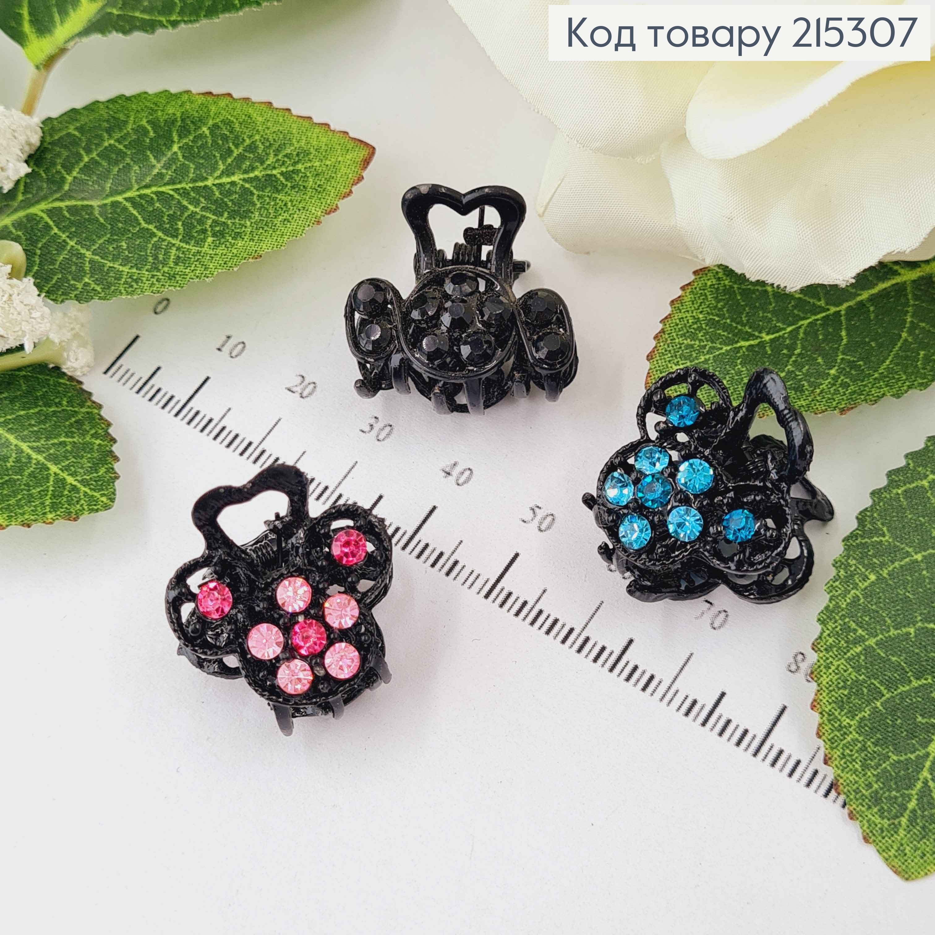 Краб металл 2см, черного цвета, с разноцветными камешками, цвета в ассорт.