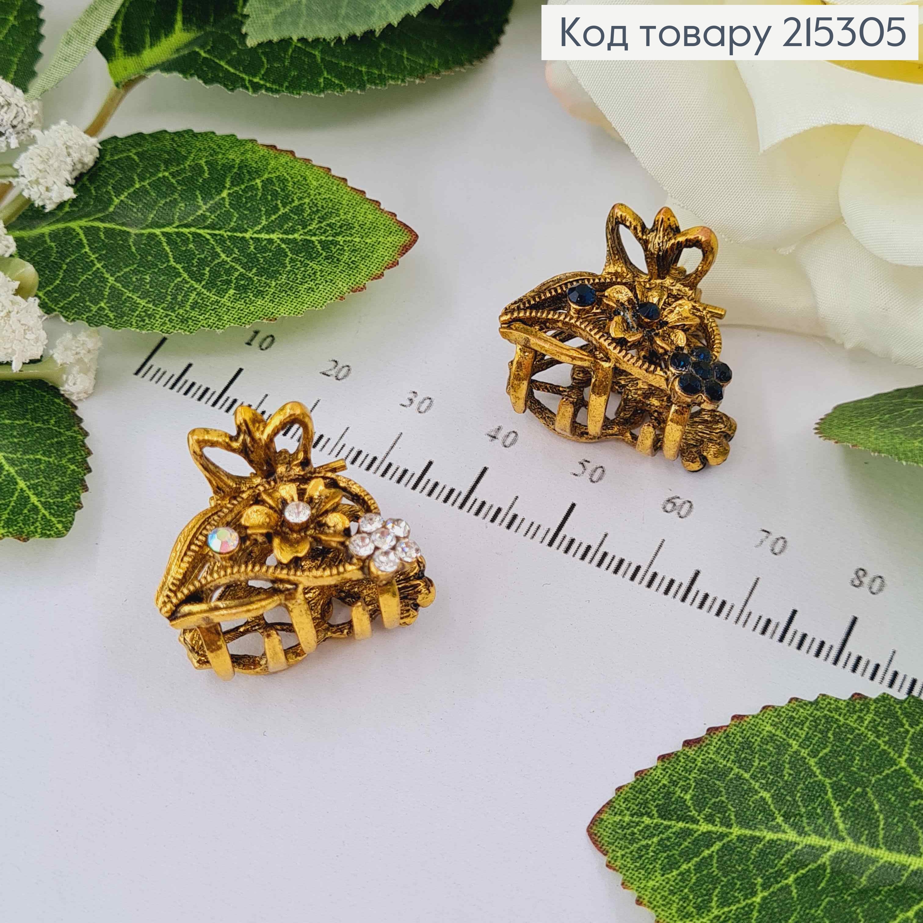 Краб металл "Петелька" украшен Блестящими камешками, 6см, Золотого цвета 215774 фото