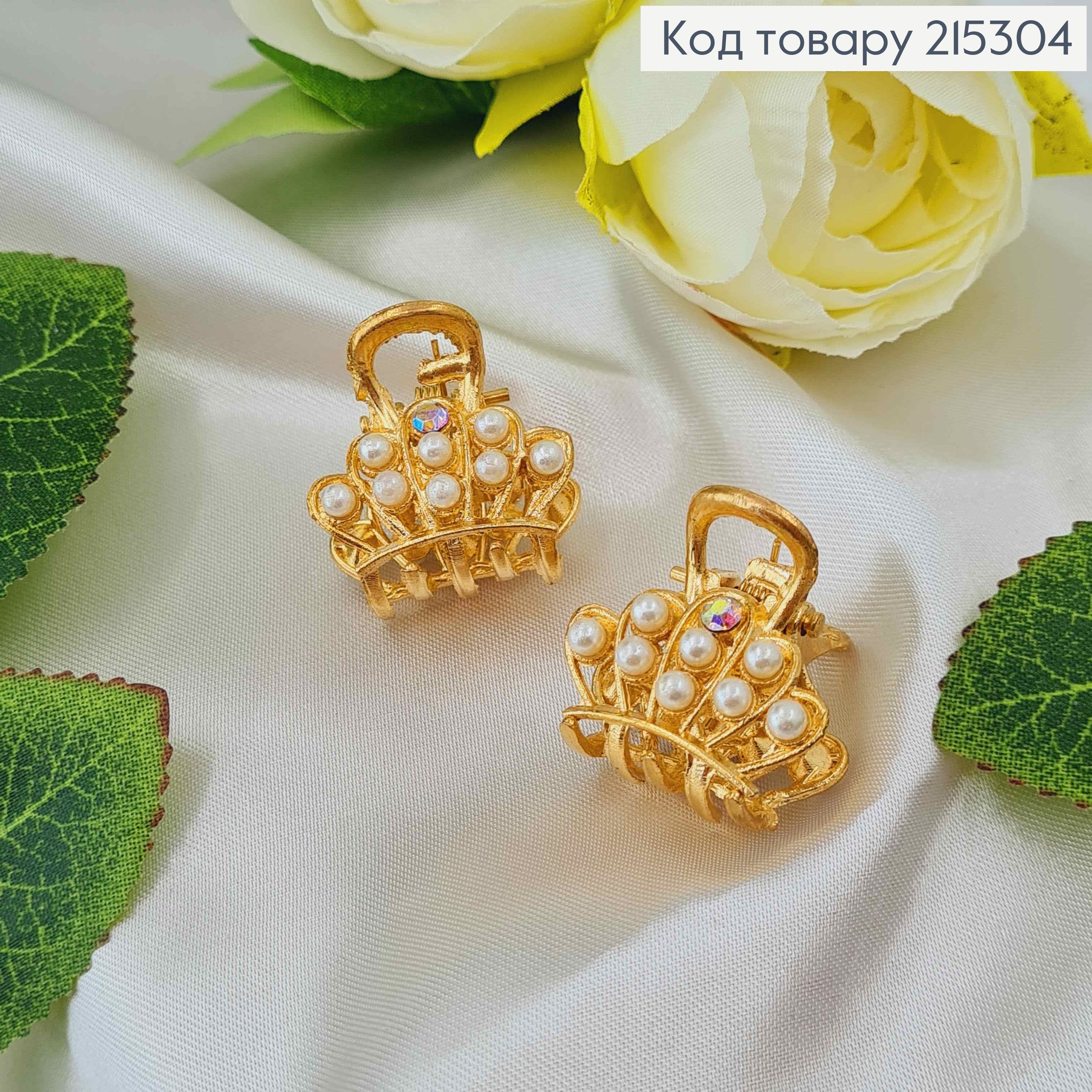 Краб металл "КОЛОСОК" с Блестящими камешками и Жемчужками, 11см, Золотого цвета 215761 фото