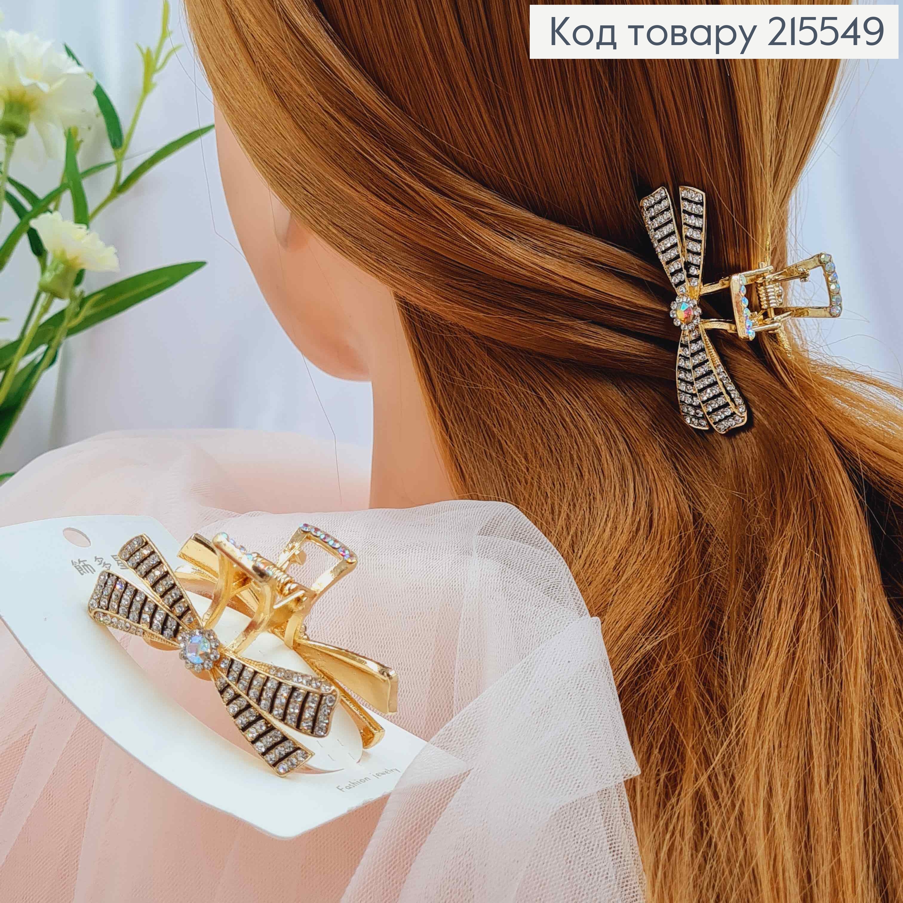 Краб металл 5см, БАНТИК золотого цвета в камнях