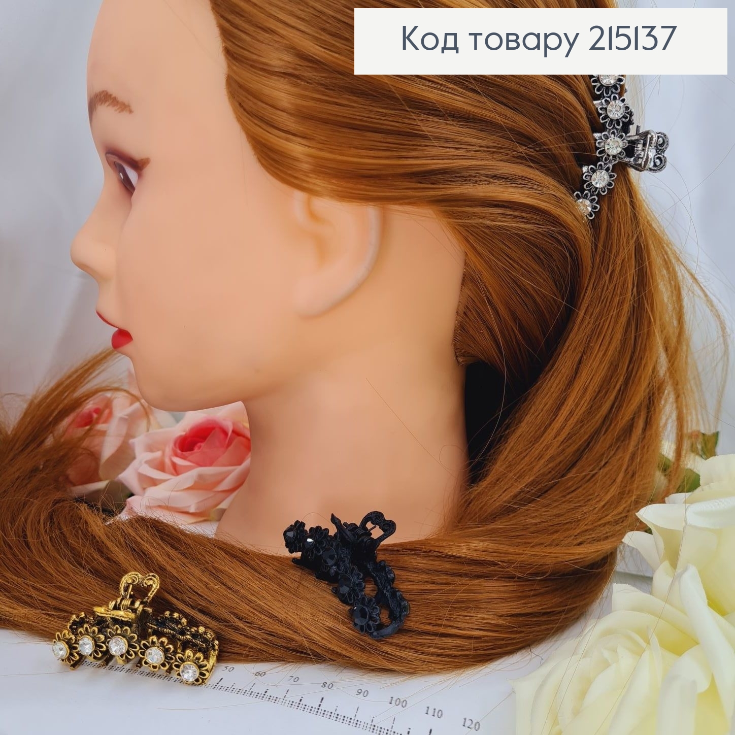 Краб металл "Петелька" украшен Блестящими камешками, 6см, Золотого цвета 215774 фото