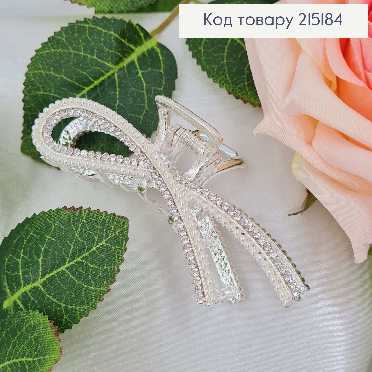 Краб металл "Бантик с Колоском" украшен Блестящими камешками, 11,5см, Серебряного цвета 215773 фото