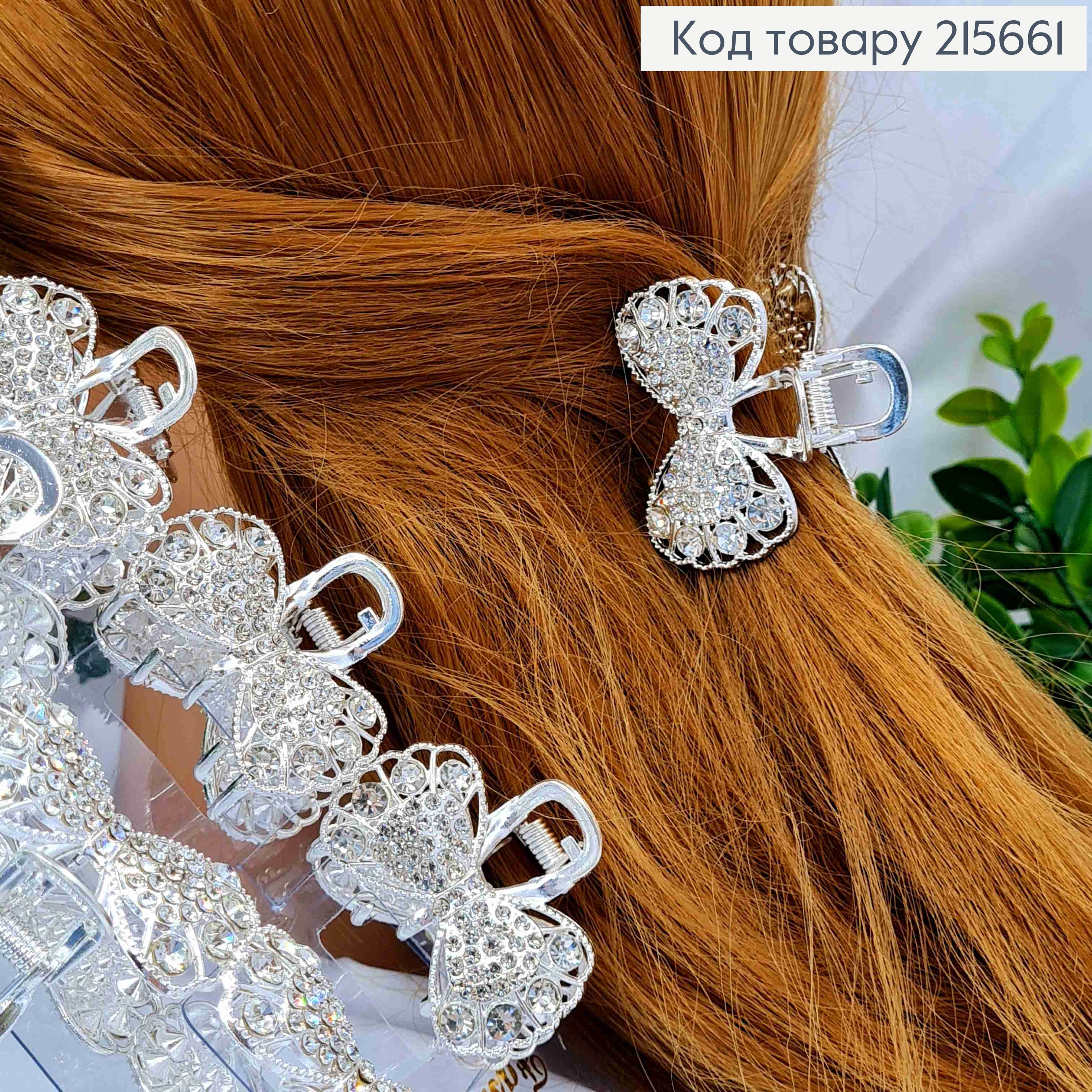 Краб металл "Ажурный БАНТИК" с Блестящими камешками, 4,5*2,5см, Серебряного цвета