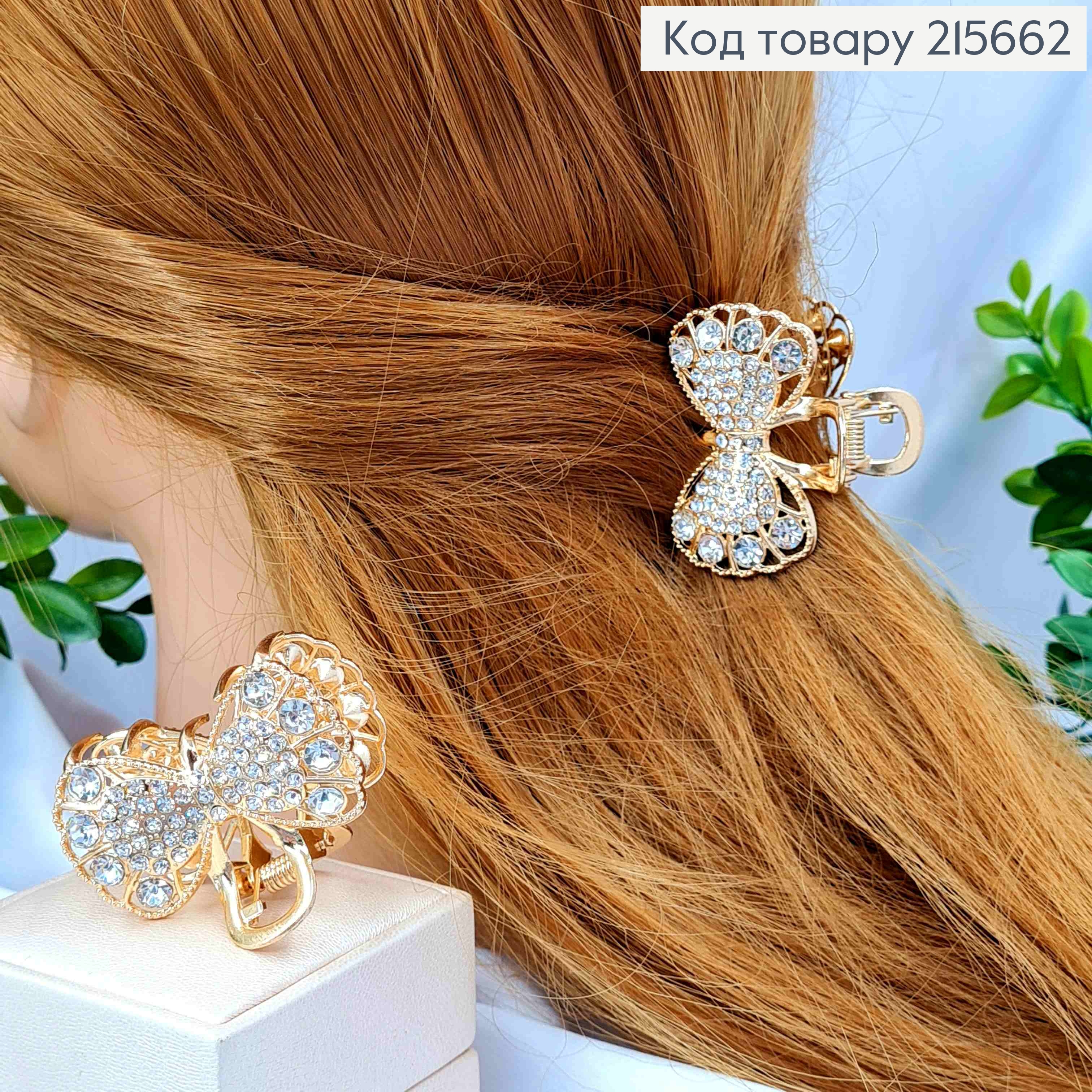 Краб металл "Ажурный БАНТИК" с Блестящими камешками, 4,5*2,5см, Золотого цвета