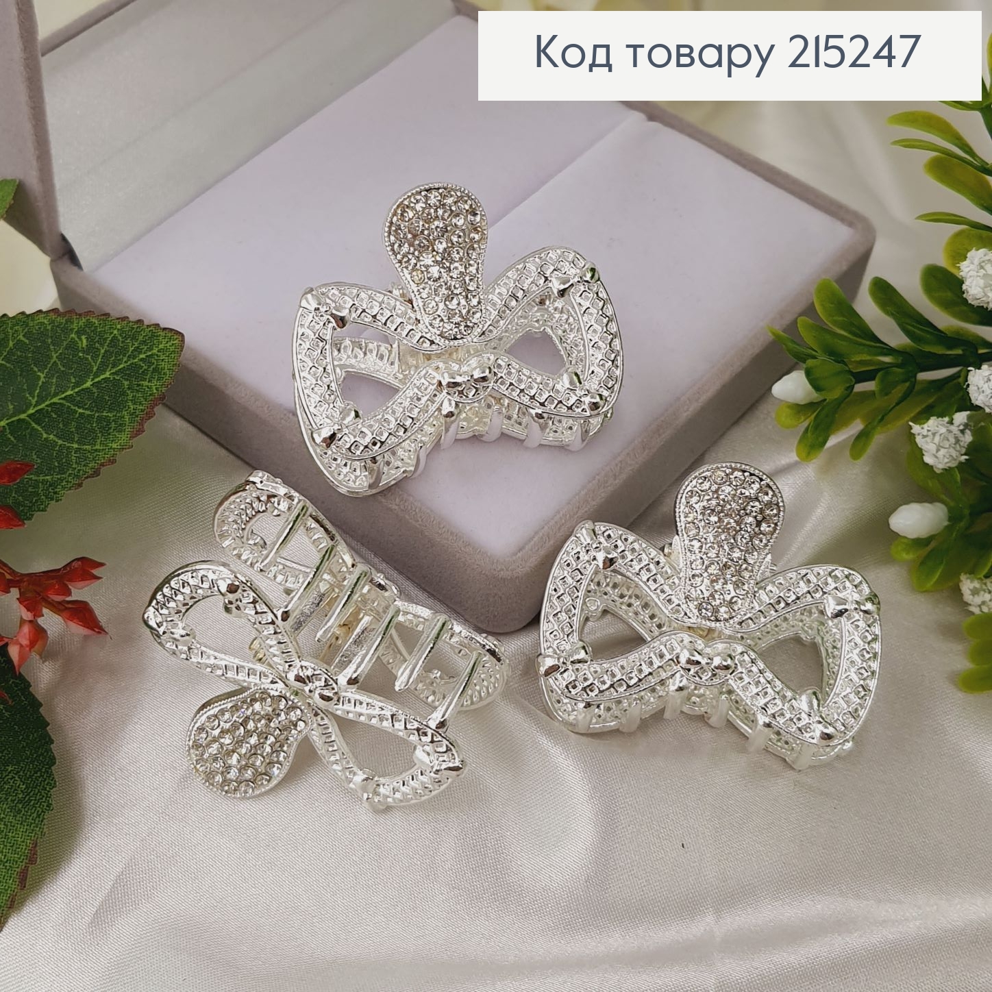 Краб металл "Ажурный Бант" украшен блестящими камешками, 6см, цвета Металик 215775 фото