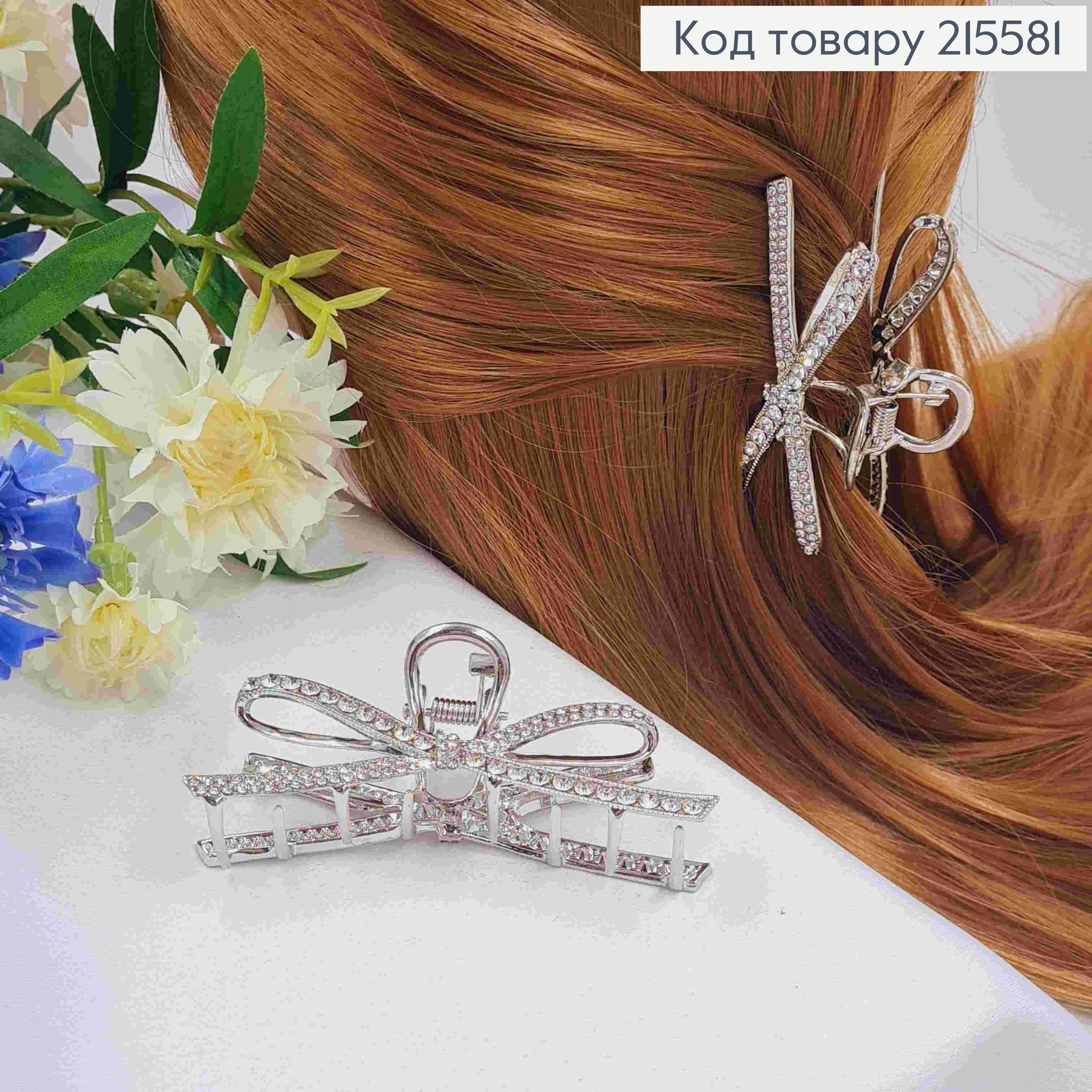 Краб металл "Бантик с Колоском" украшен Блестящими камешками, 11,5см, Серебряного цвета 215773 фото