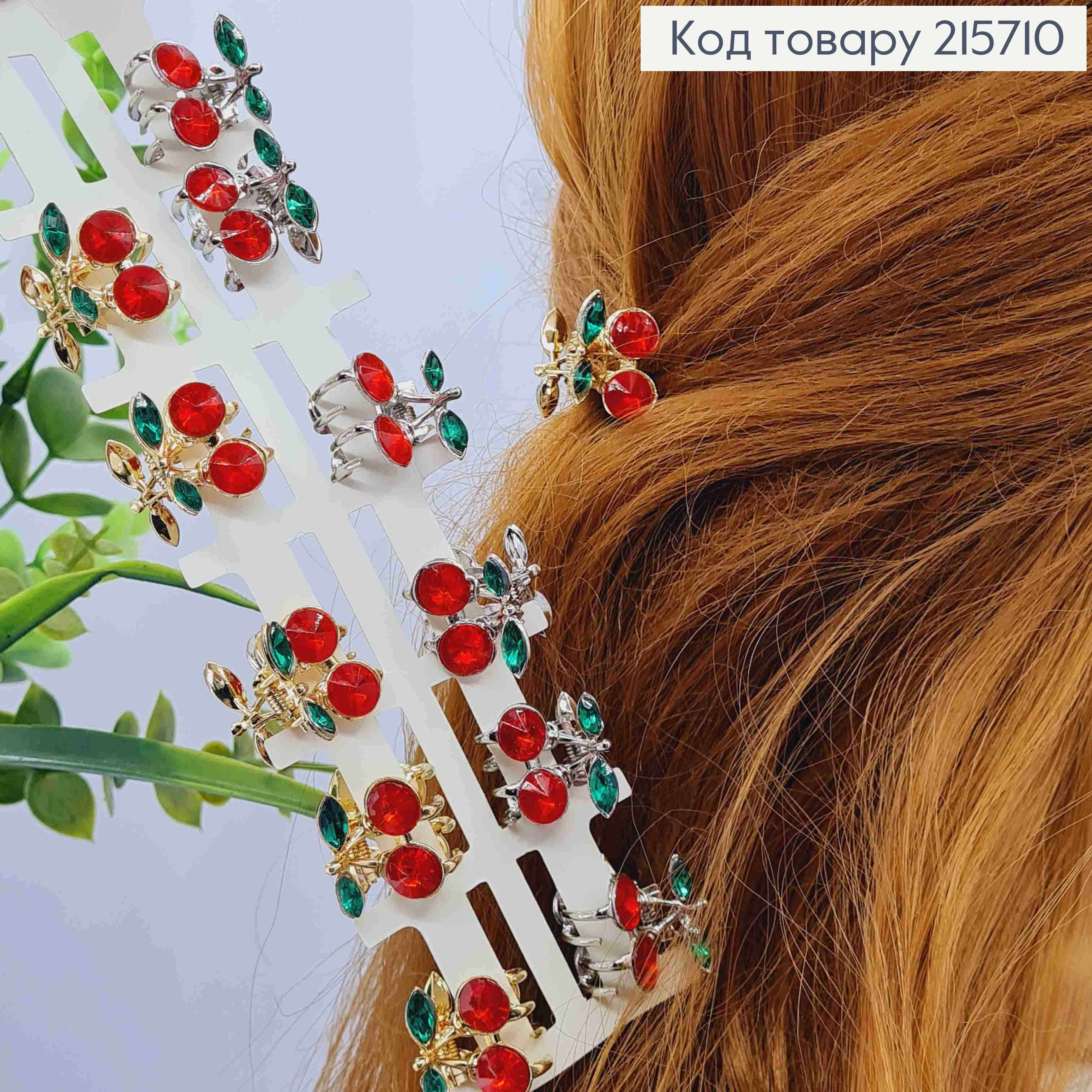 Краб металл "Красные Вишенки" с Камешками, 12см, Золотого/Серебряного цвета в ассортименте