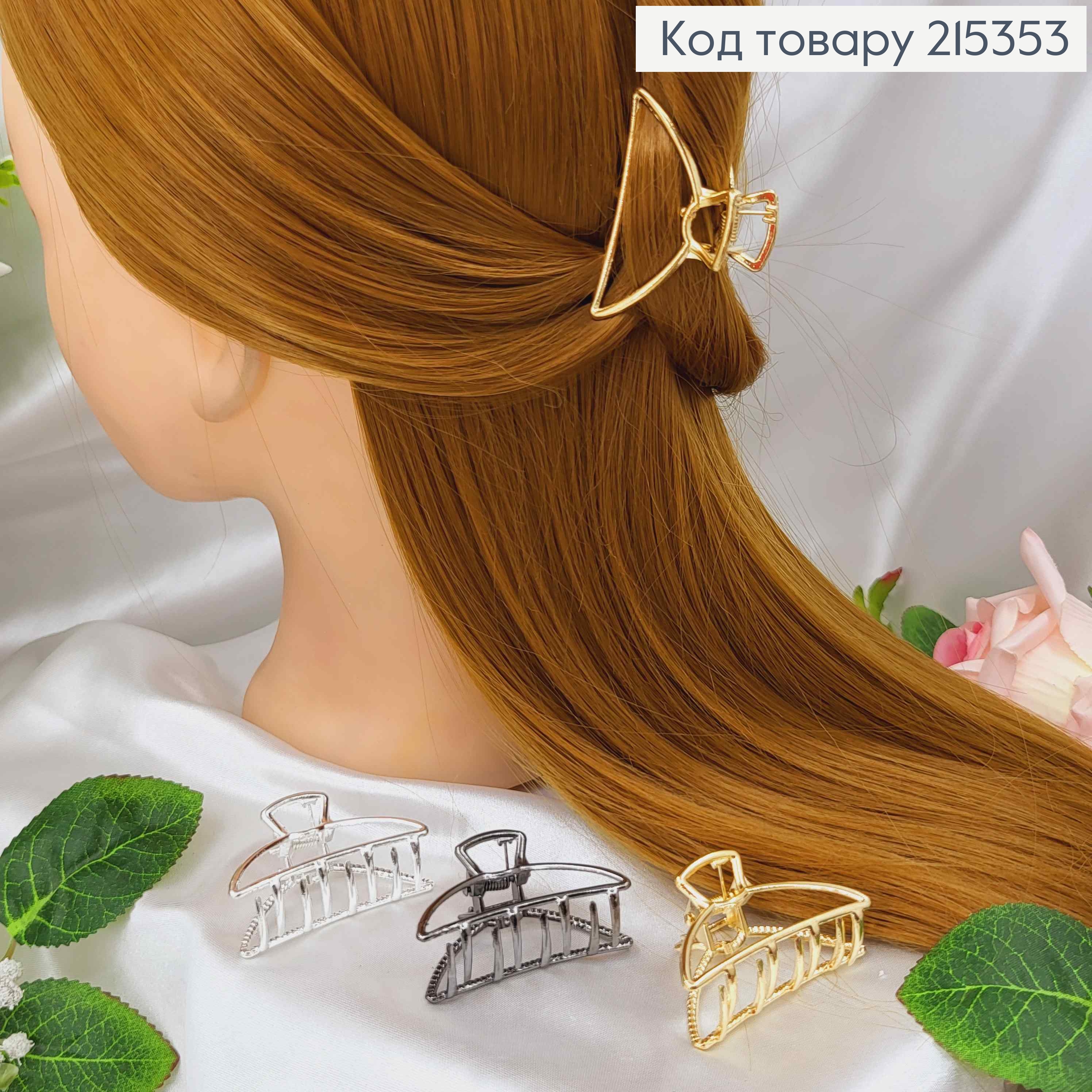 Краб металл, "Три сплетенных кольца", 5см, Золото/Серебро/Металик цвета в ассорт. 215777 фото