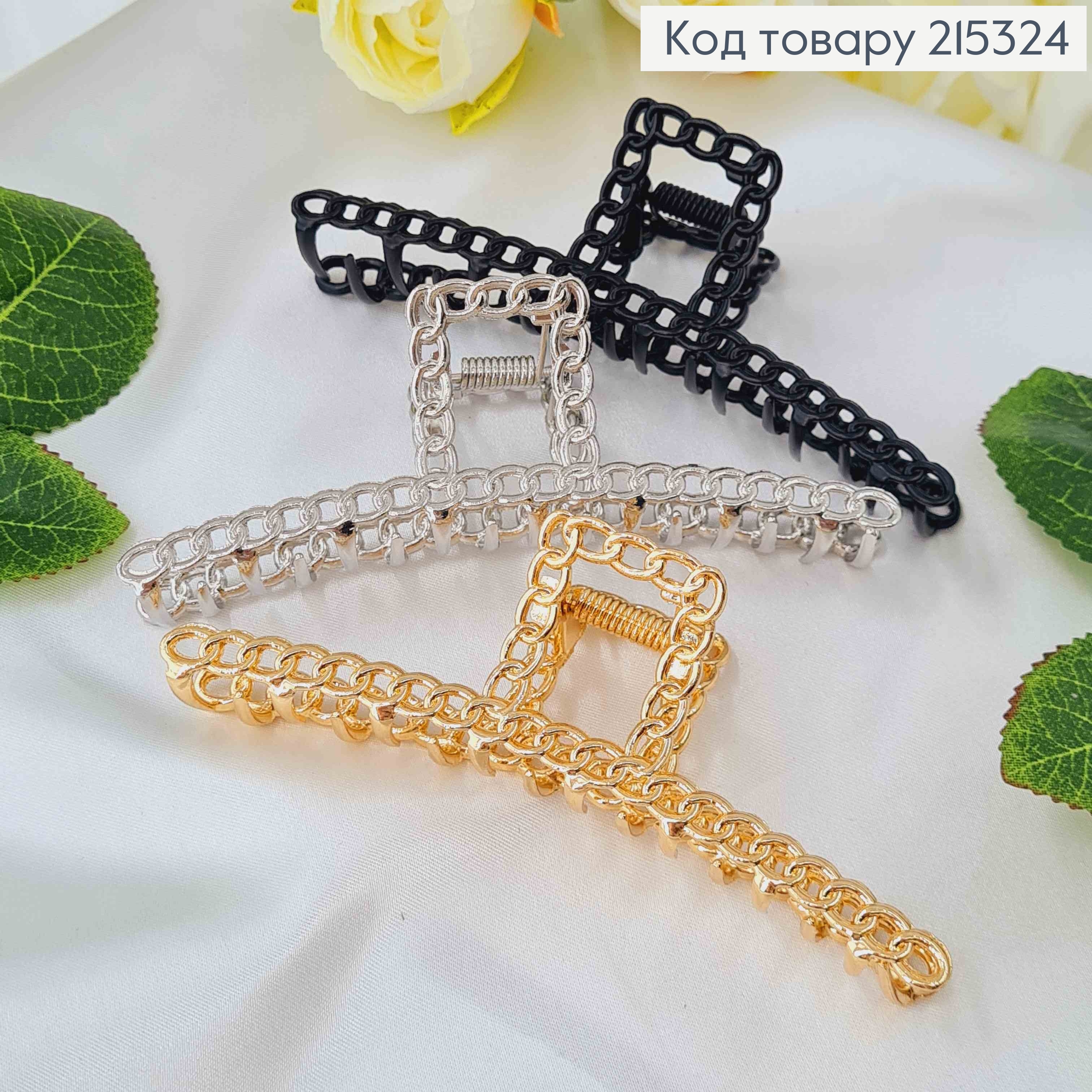 Краб металл, "Три сплетенных кольца", 5см, Золото/Серебро/Металик цвета в ассорт. 215777 фото