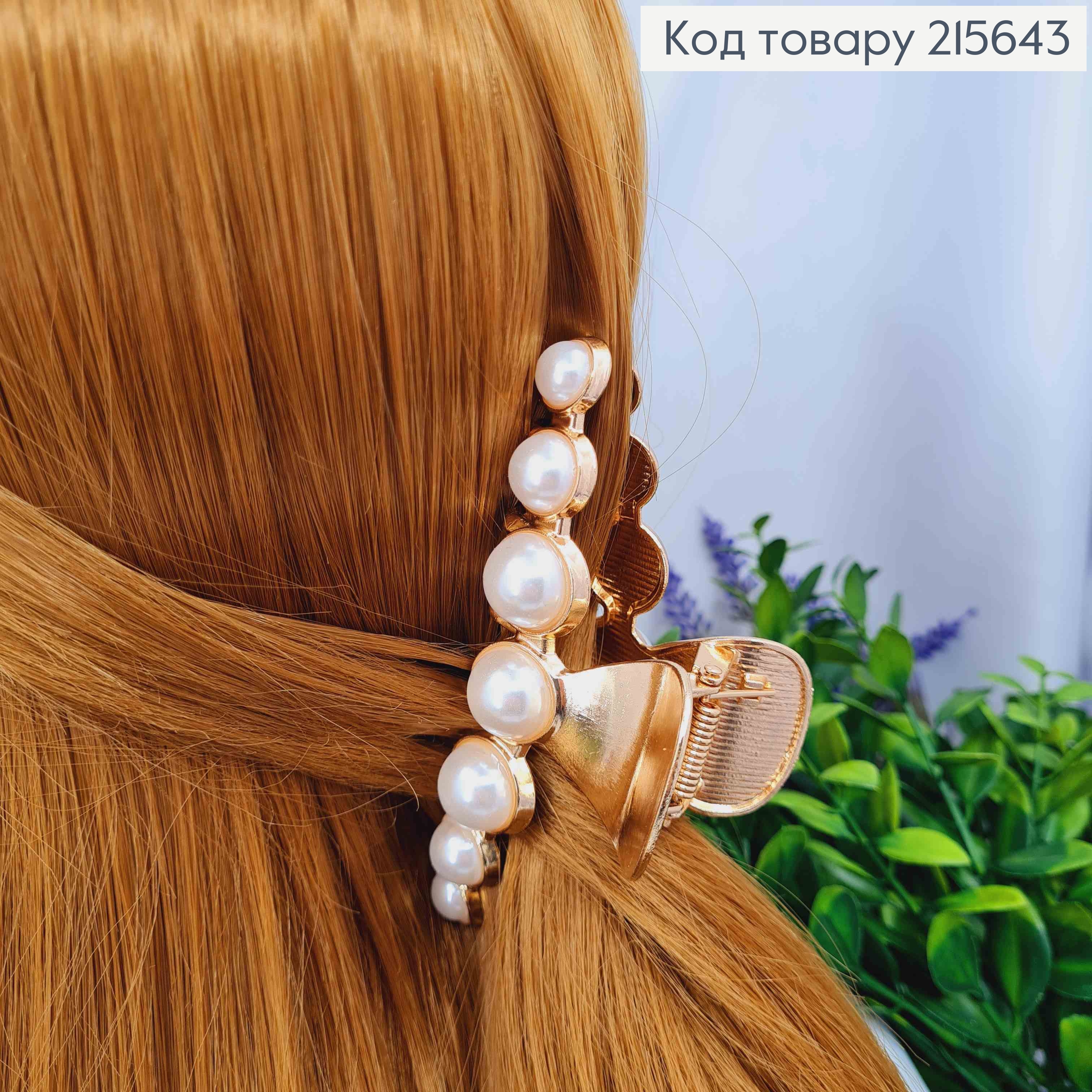 Краб металл Дуга украшен перламутровыми бусинами, 11см, Золотого цвета.